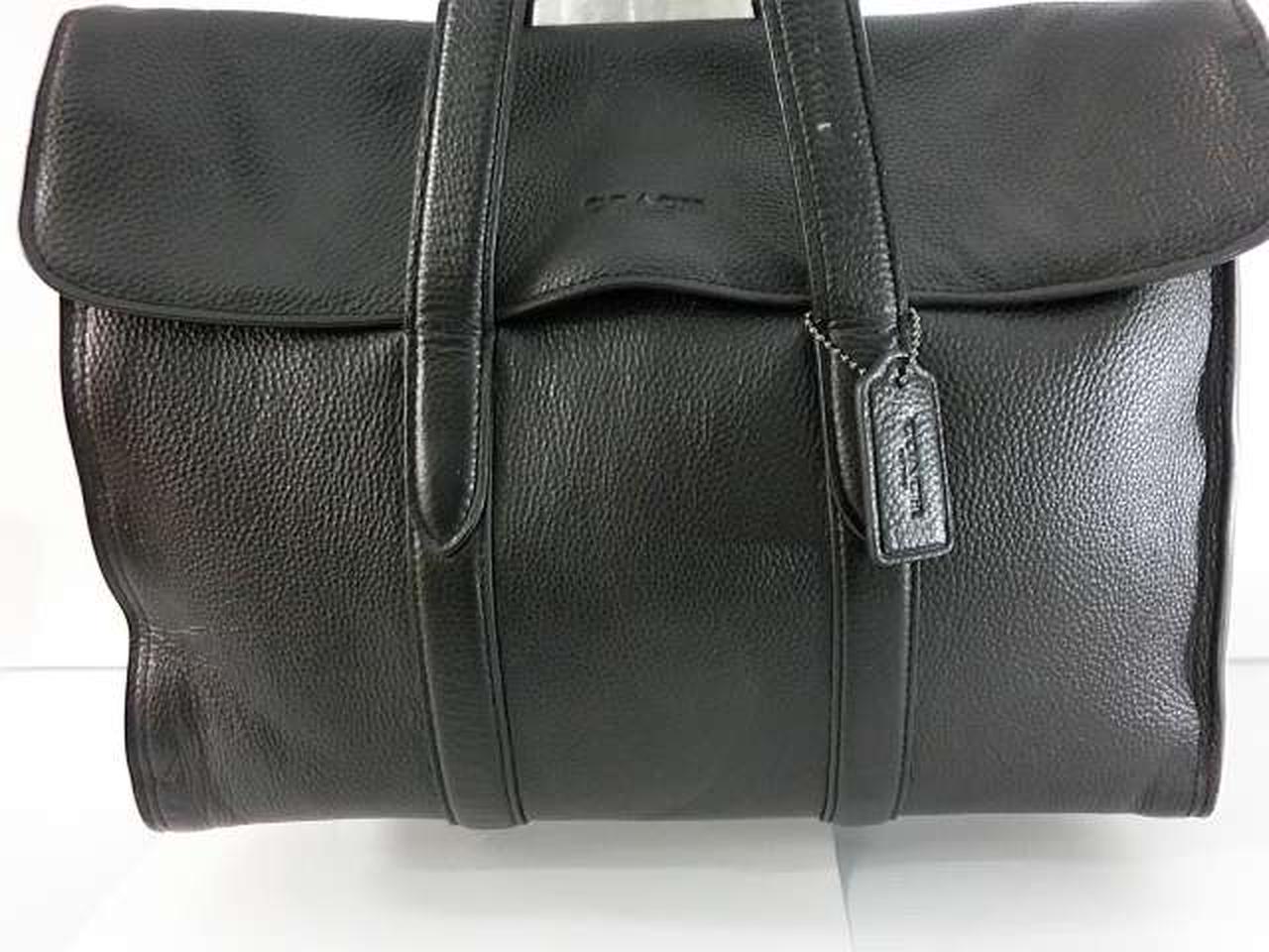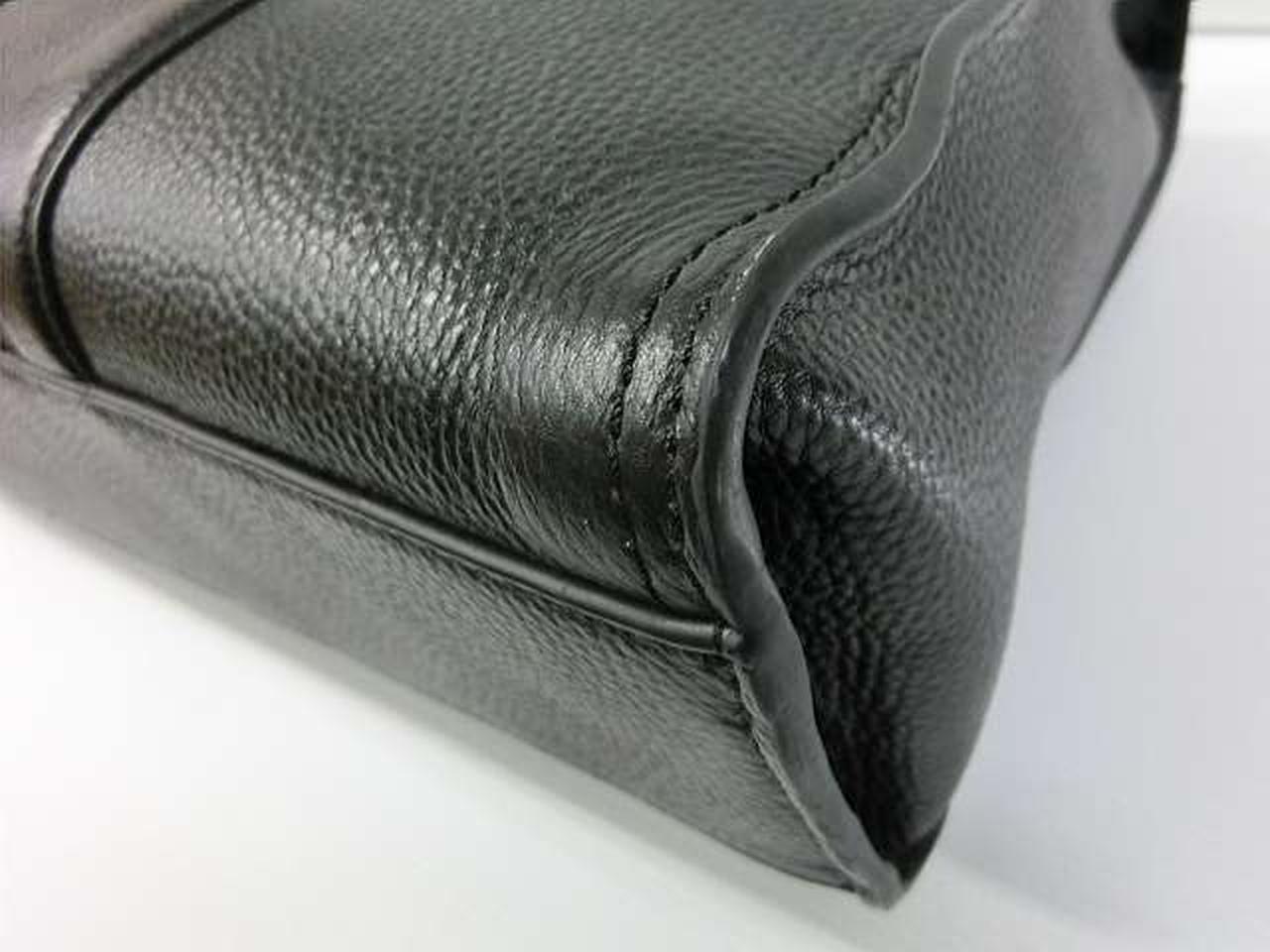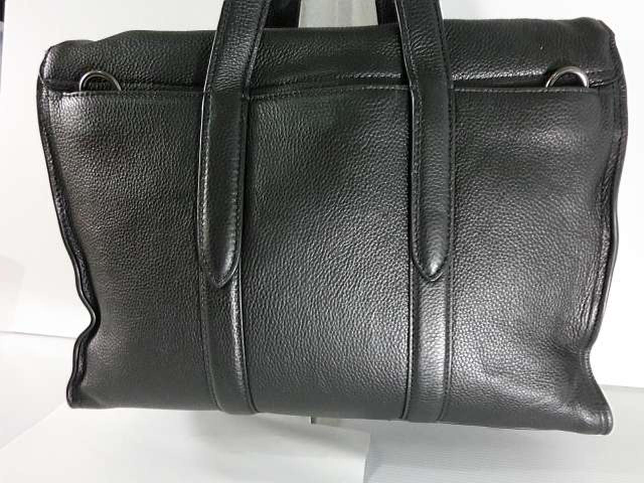 リファインドペブルドレザー(牛革)を使用しており、丈夫で洗練された質感が特徴です。15インチのノートパソコンが入るスペースに加え、複数の内ポケット(ファスナーポケット、オープンポケット、ペンポケット、スナップボタンポケット)を備えており、機能性に優れています。 |