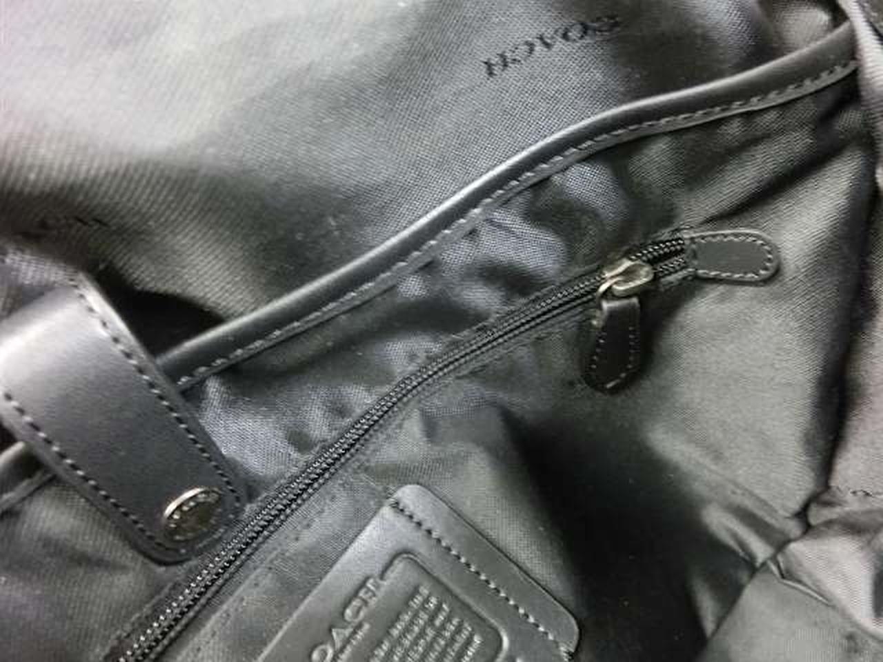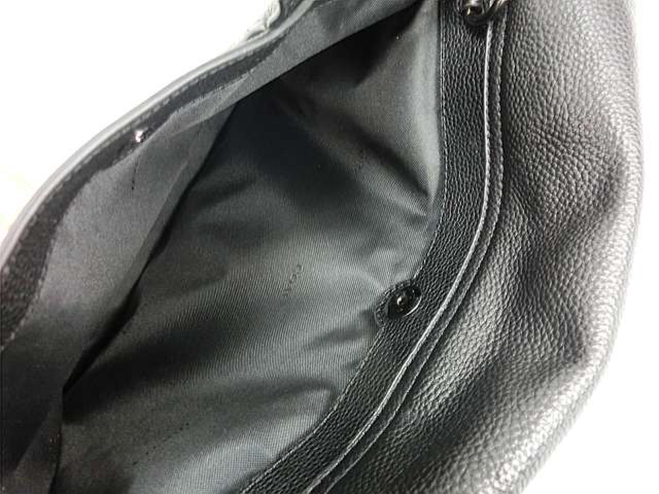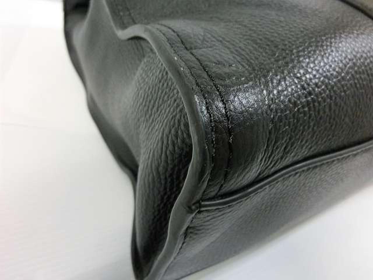 リファインドペブルドレザー(牛革)を使用しており、丈夫で洗練された質感が特徴です。15インチのノートパソコンが入るスペースに加え、複数の内ポケット(ファスナーポケット、オープンポケット、ペンポケット、スナップボタンポケット)を備えており、機能性に優れています。 |