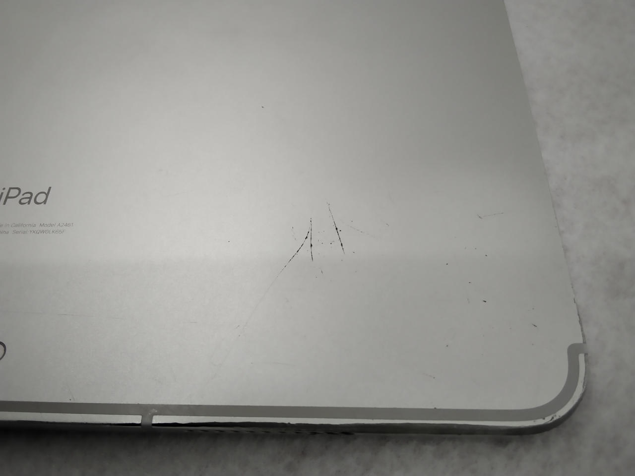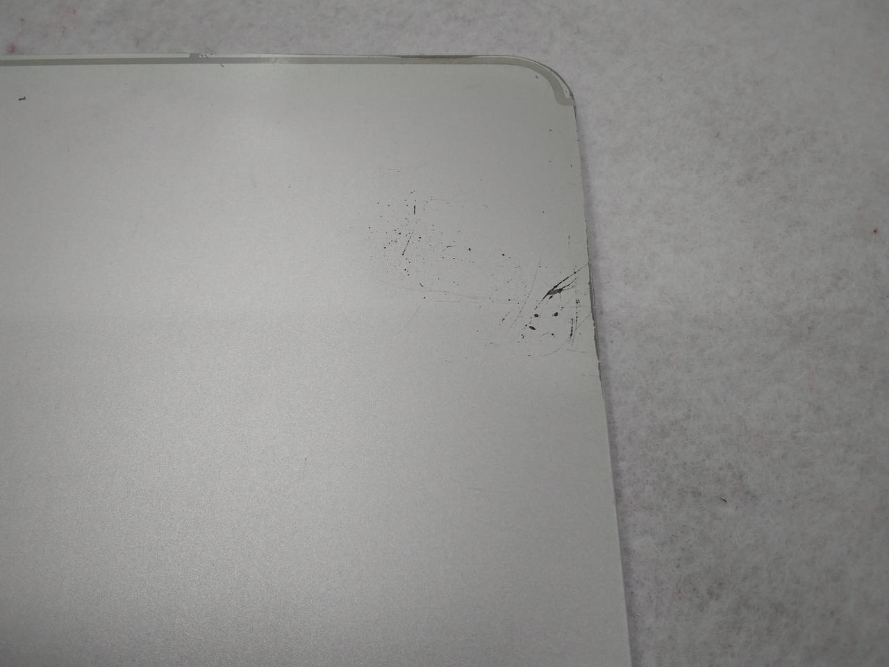 ※画面に細かいキズ多数(映りには問題なし)と本体側面がえぐれた傷跡があります。 |