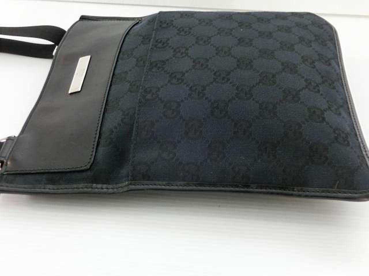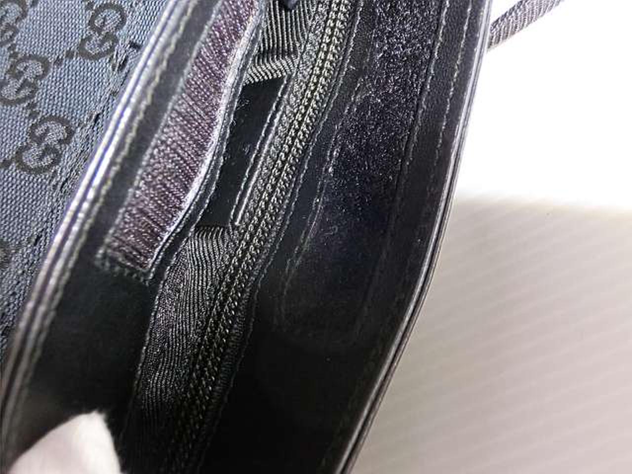 シンプルでフラットなデザインが特徴で、GGキャンバス素材がブランドのアイデンティティを確立しています。外側と内側にポケットがあり、小物を整理しやすい実用的な作りです。 |