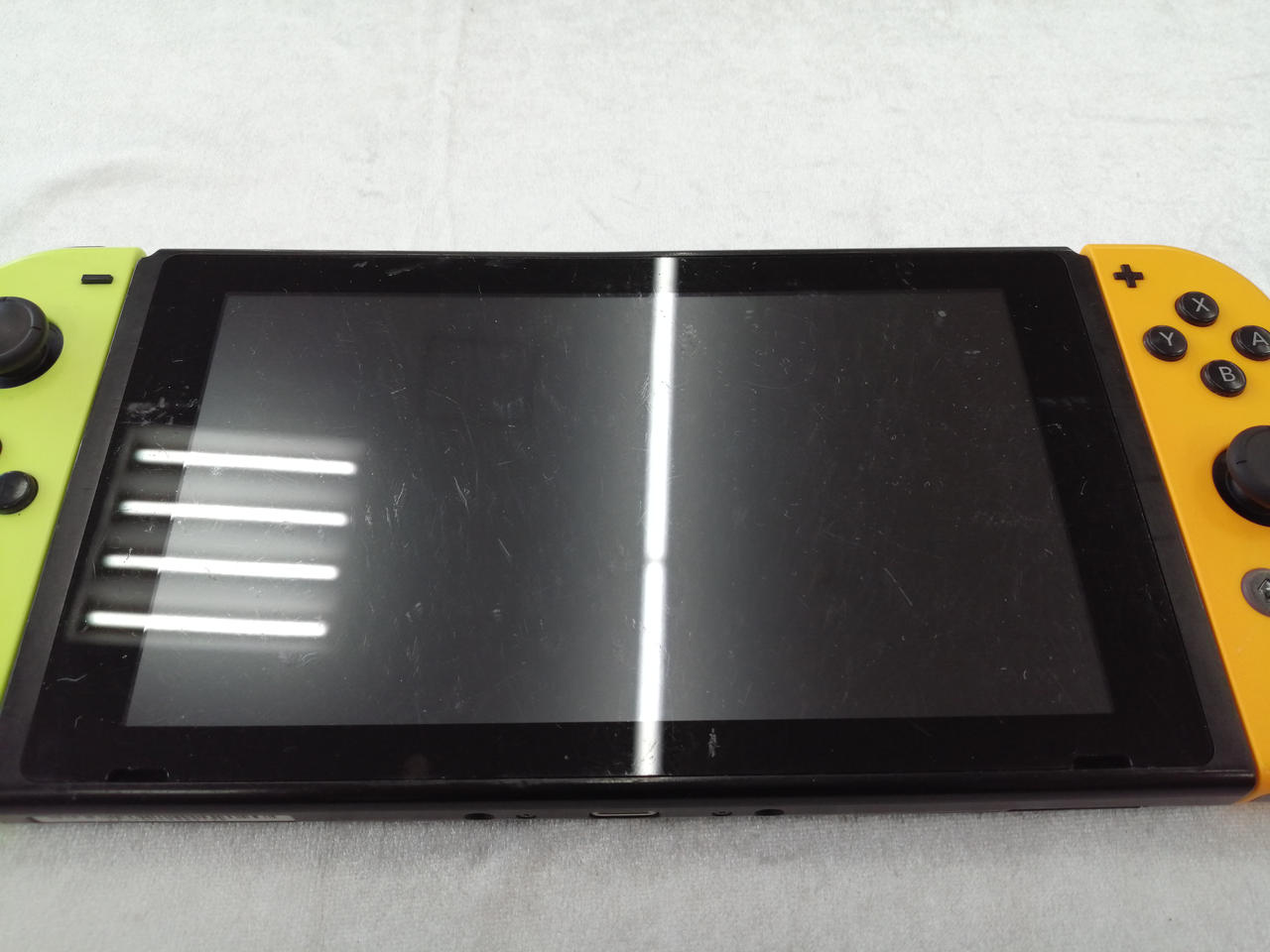 ※液晶左上ヤケ・キズあり・ジョイコン色違い・本体スピーカー割れ・歪みあり |