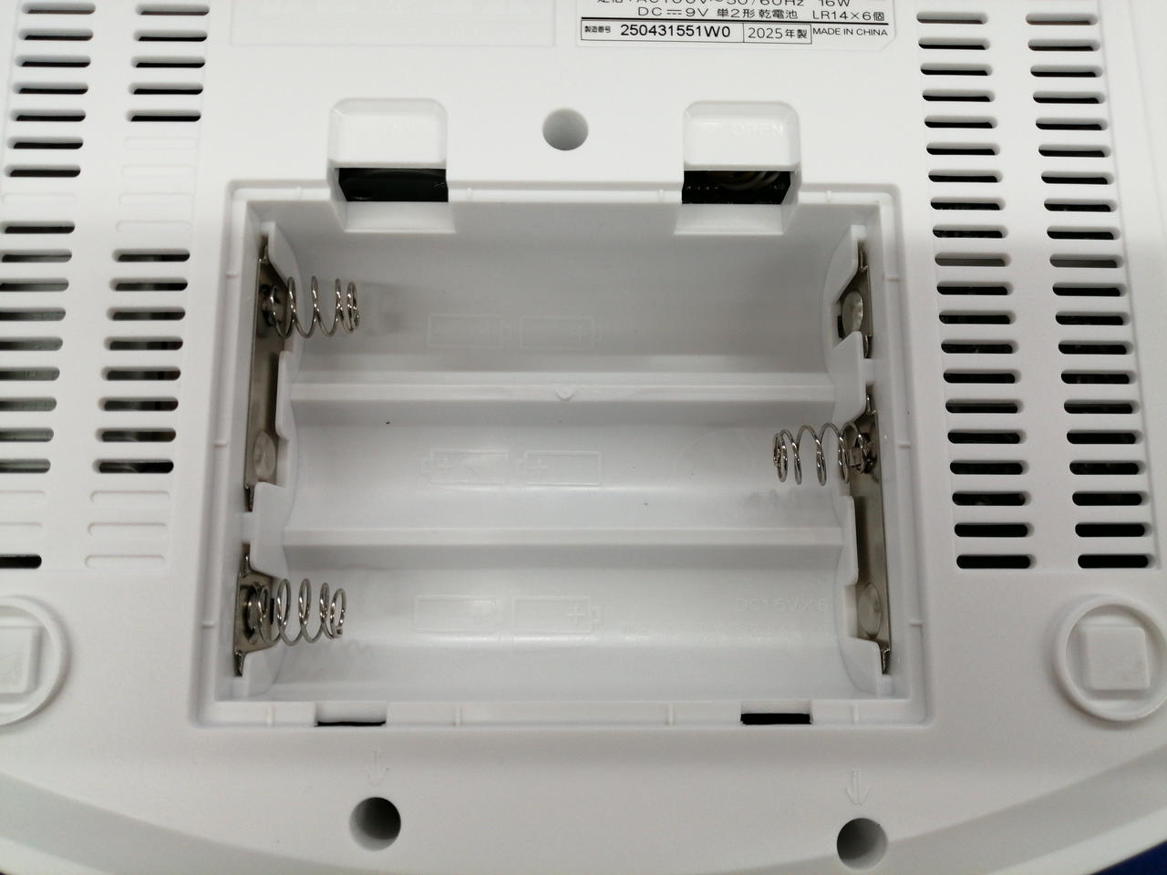 単二乾電池6本でも駆動可能。 |