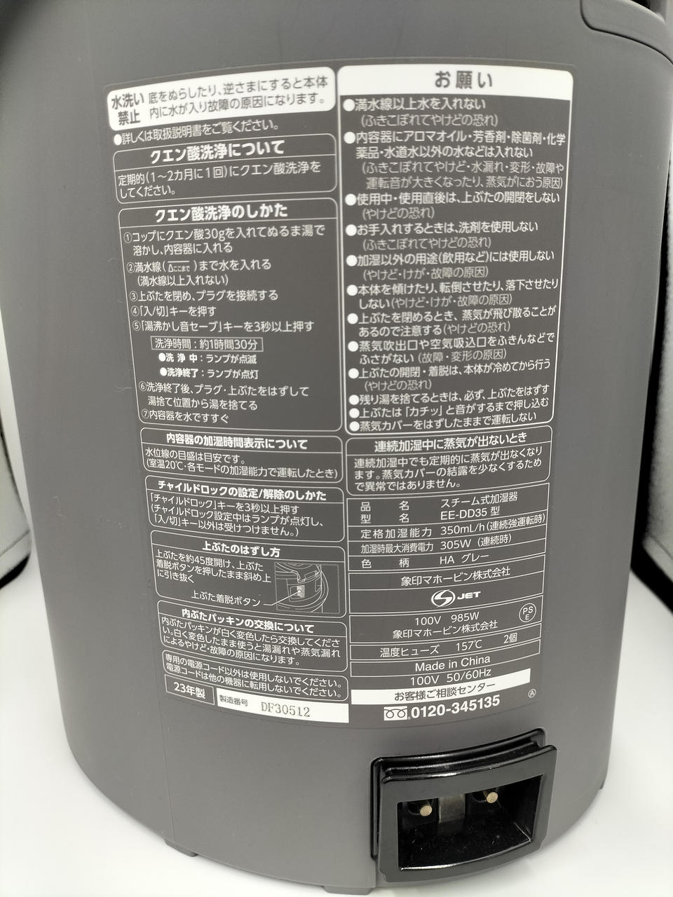 象印スチーム式加湿器になります!