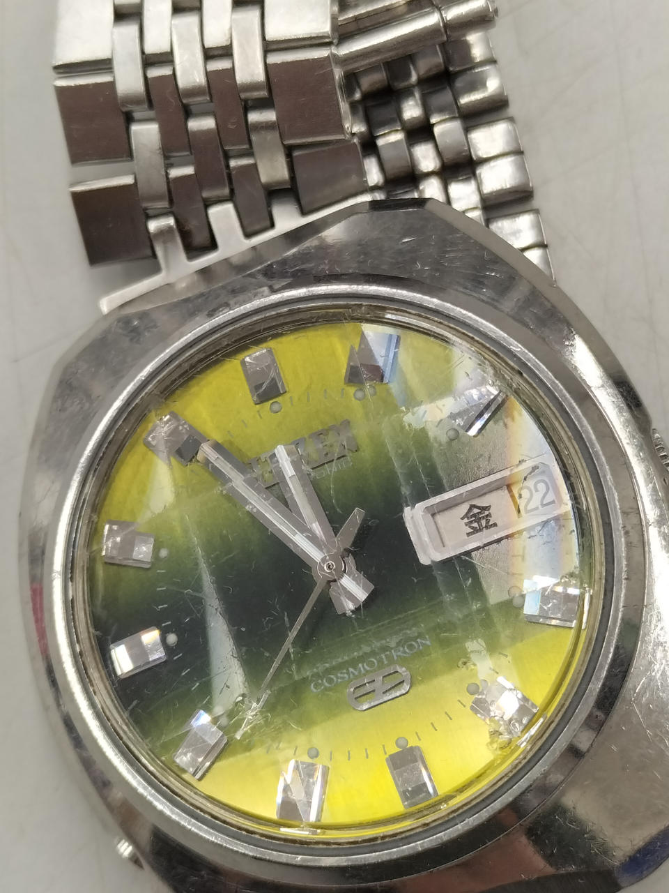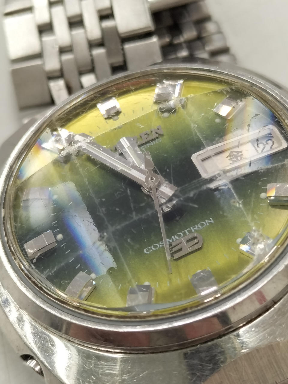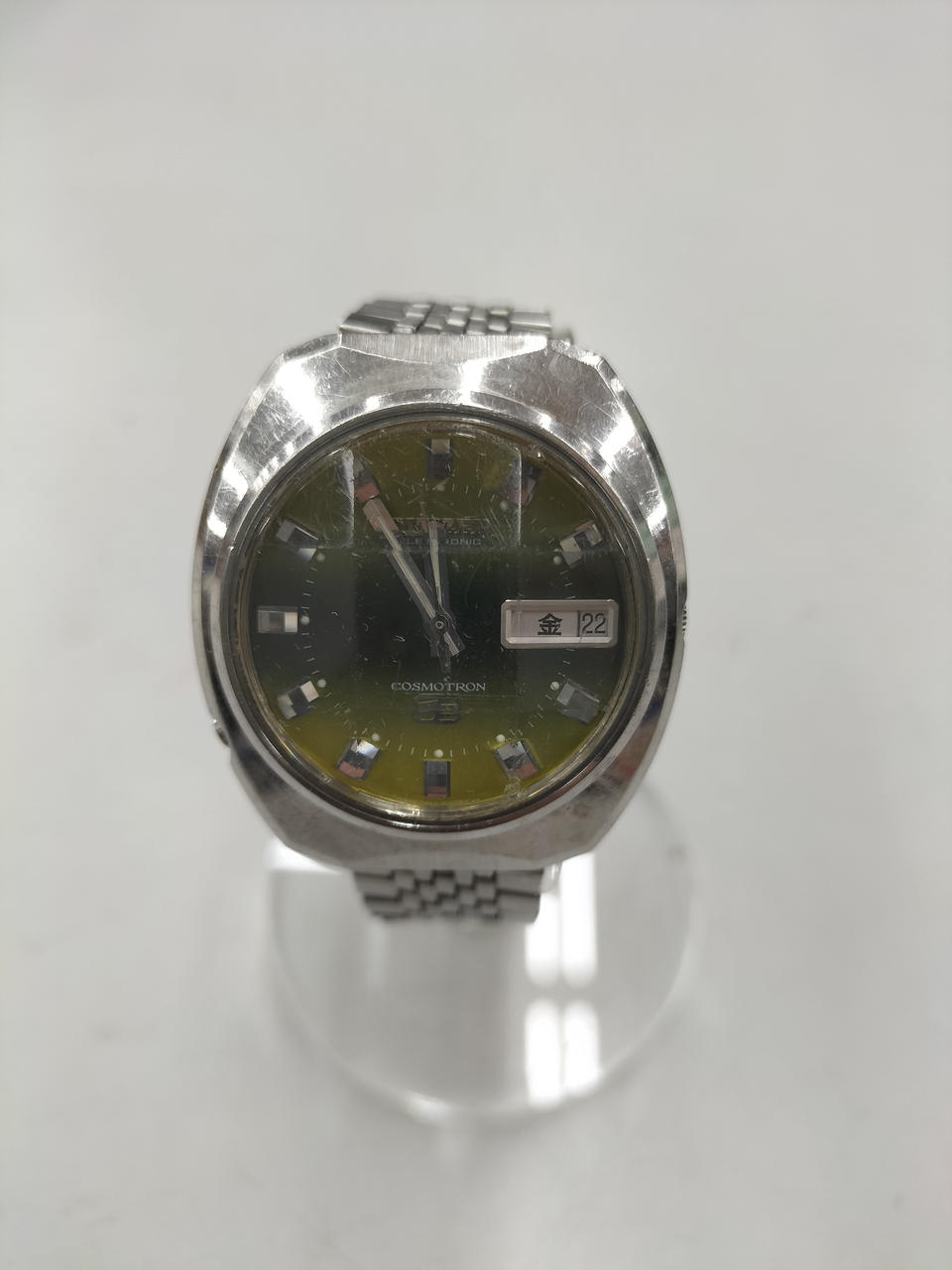 アンティークなCOSMOTRON。ガラス面、ベゼルともにキズ多数あります。動作しました。