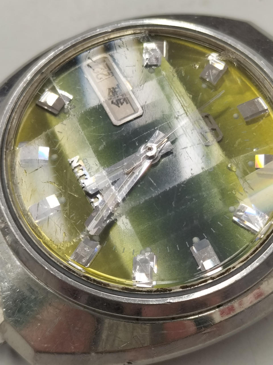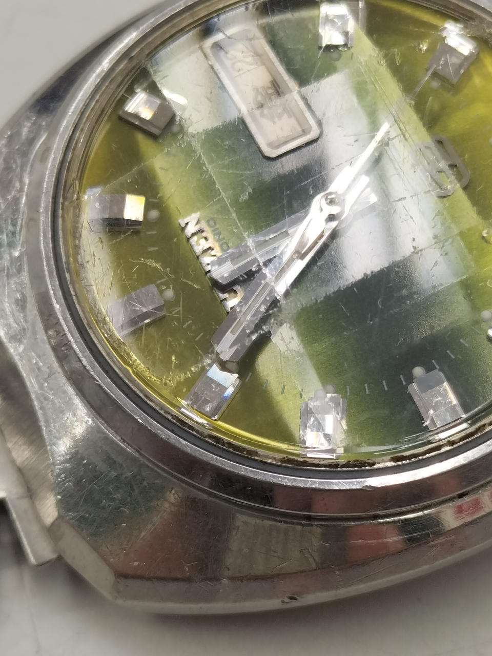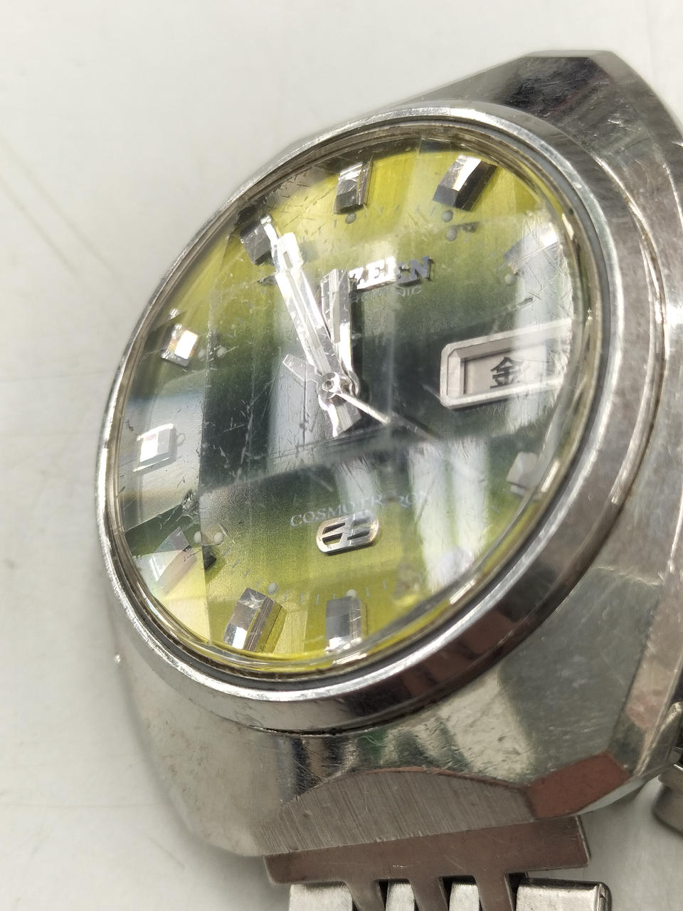 アンティークなCOSMOTRON。ガラス面、ベゼルともにキズ多数あります。動作しました。