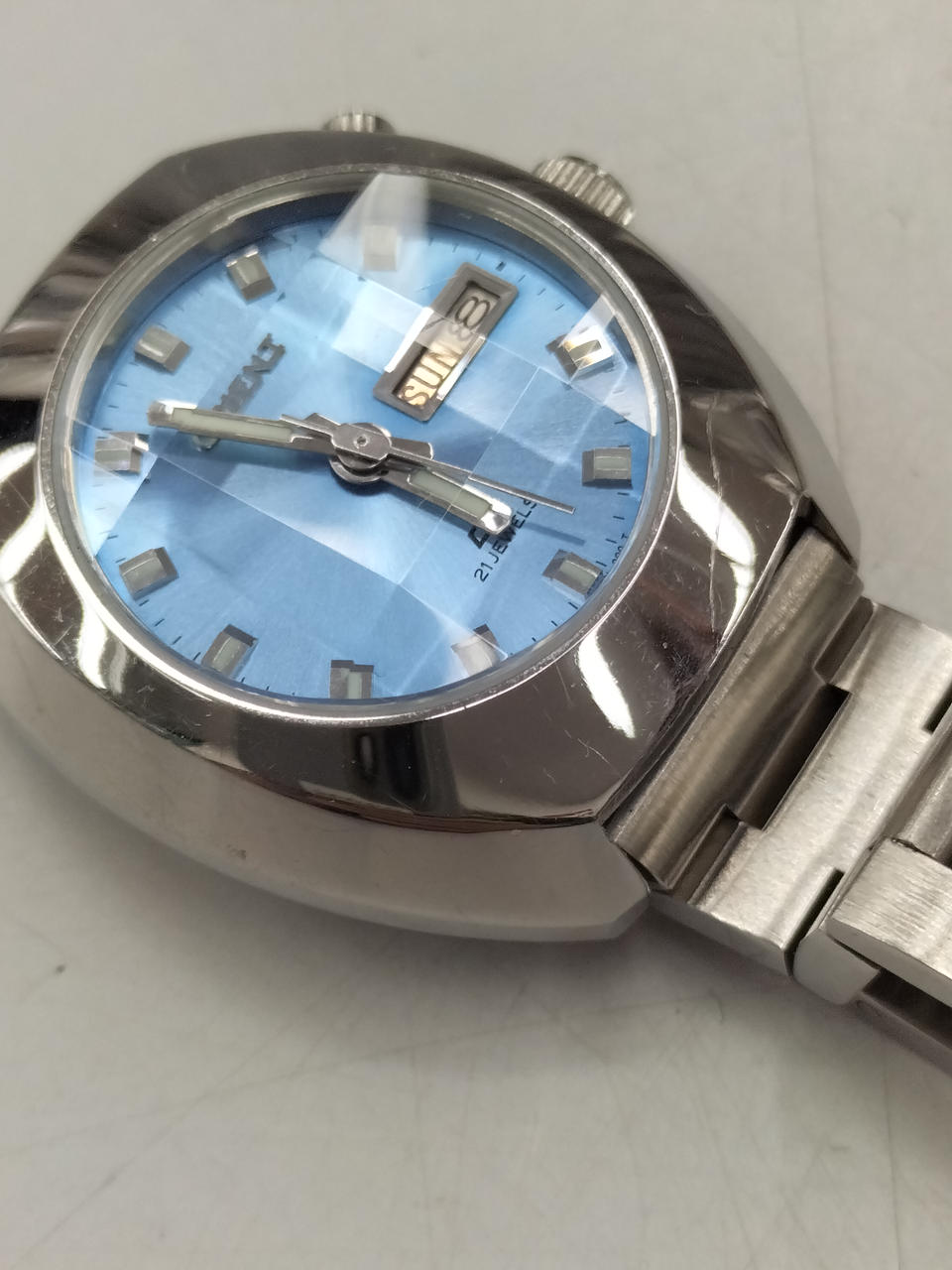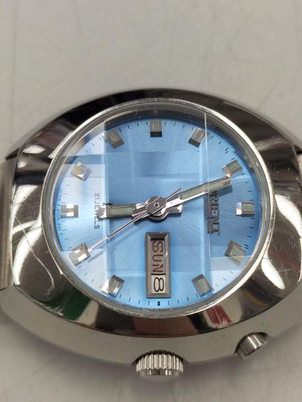ベゼル右下にキズあります。レトロな手巻き時計。
