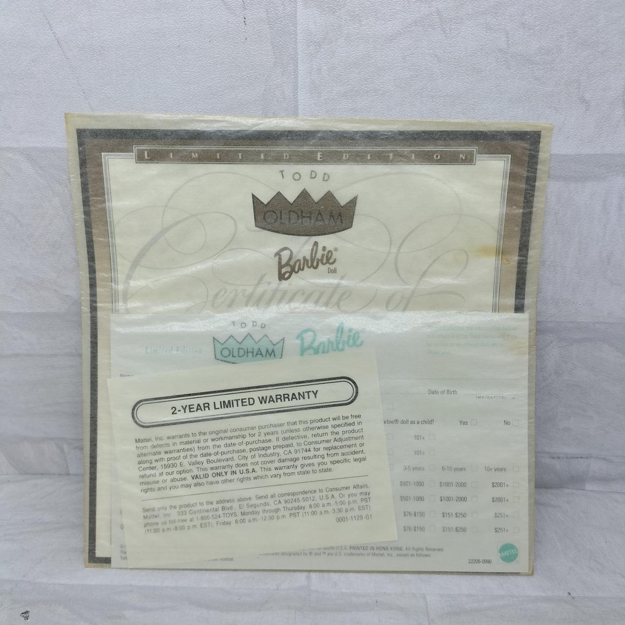 型番:TODD OLDHAM BARBIE DOLL COLLEC