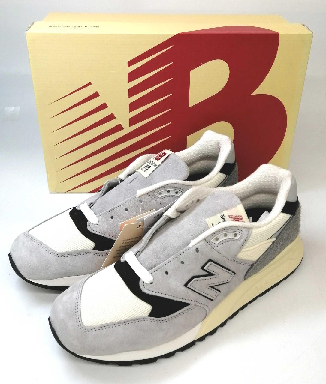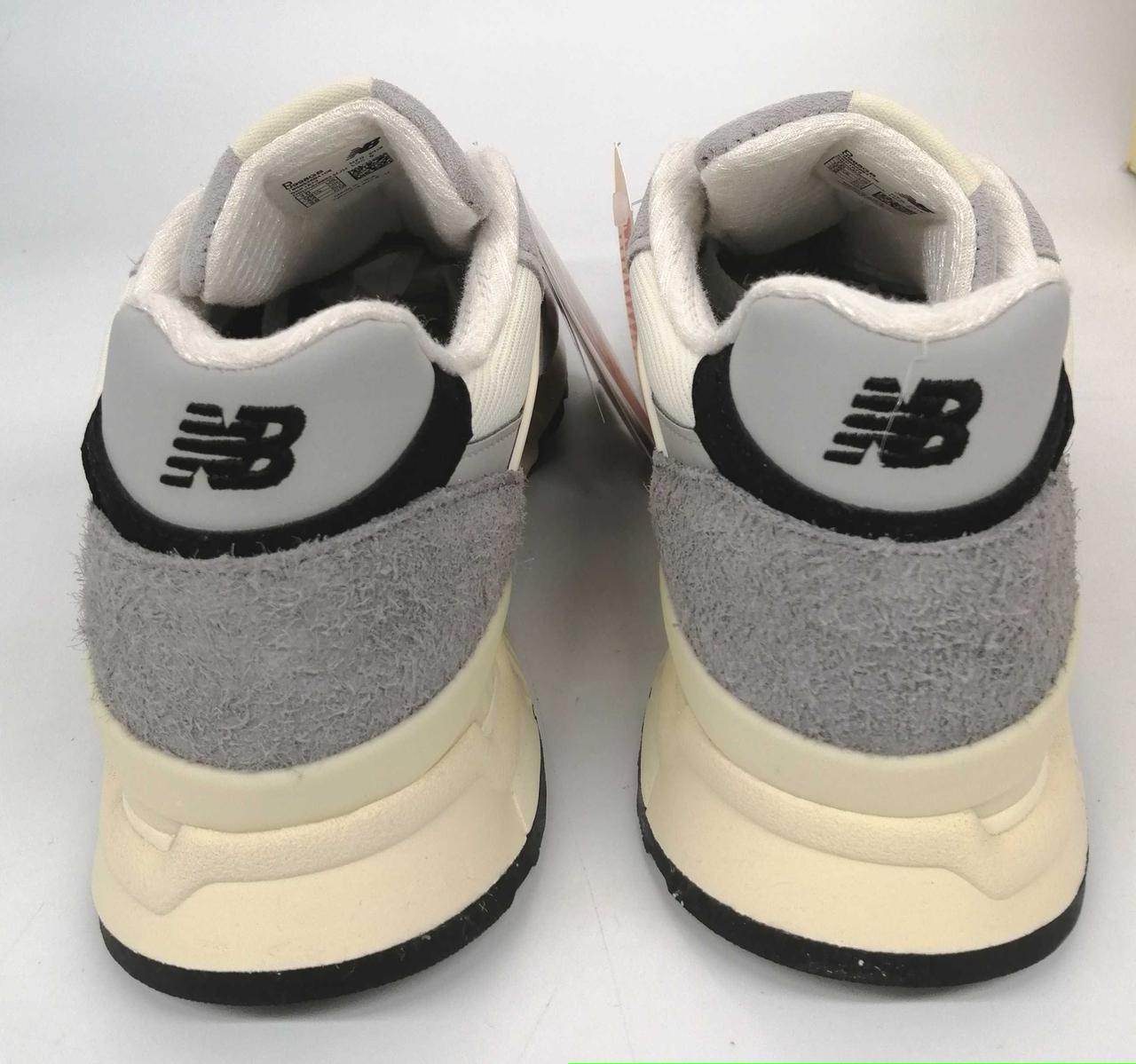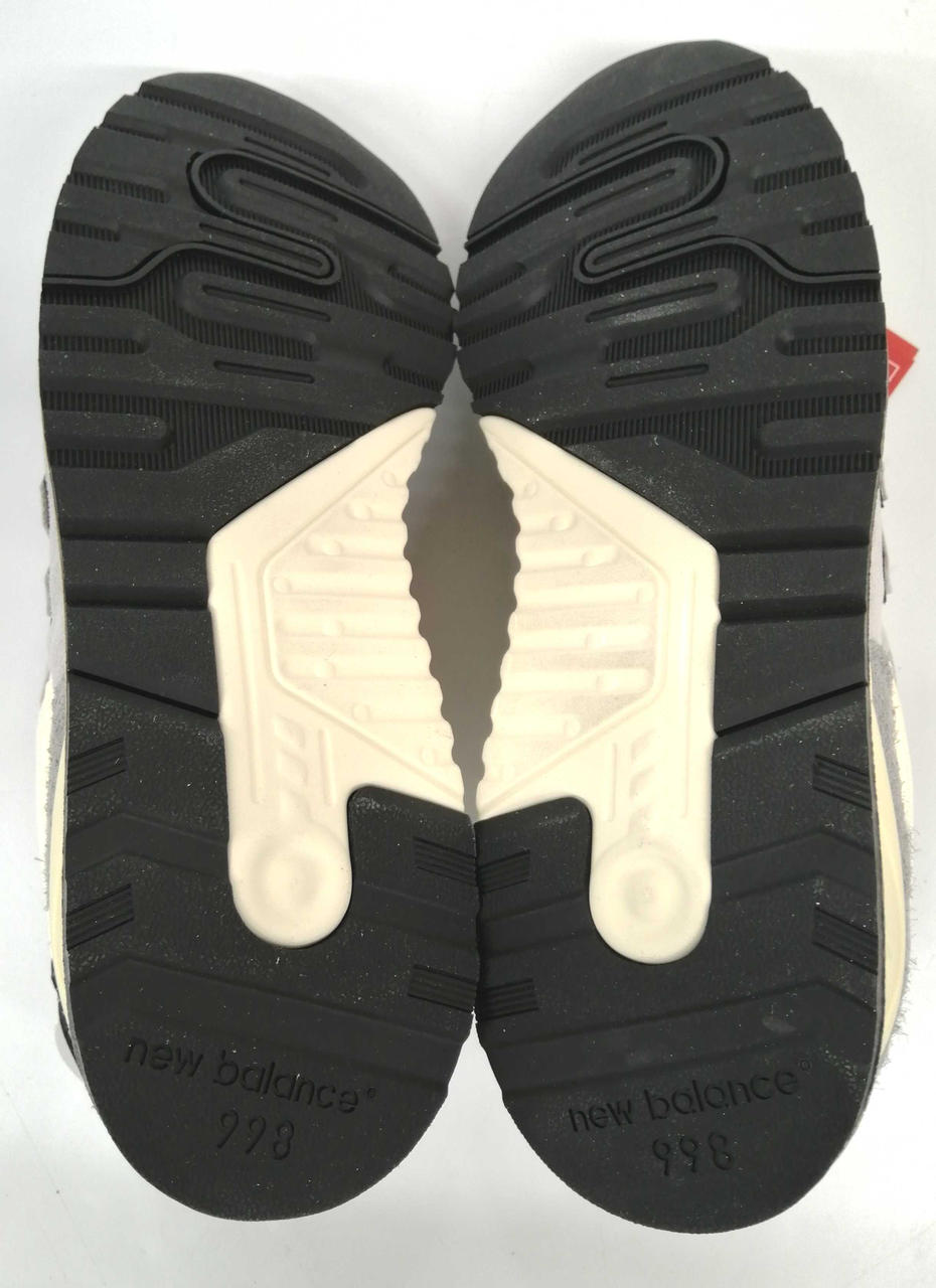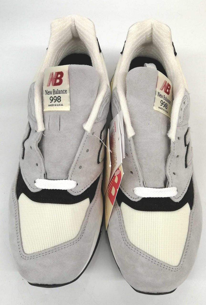 上質なピッグスキンスエードとメッシュを採用し、ヘリテージカラーのグレーをベースにホワイトとブラックのアクセントが施されています。