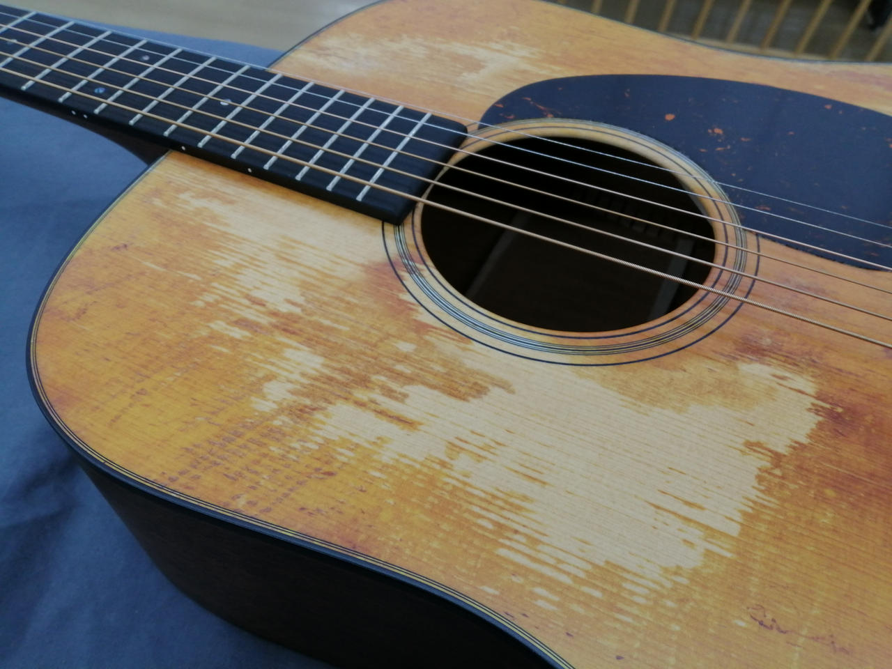 傷、変色はレリック加工ではなく、高性能インクジェットプリント加工によって再現。 |