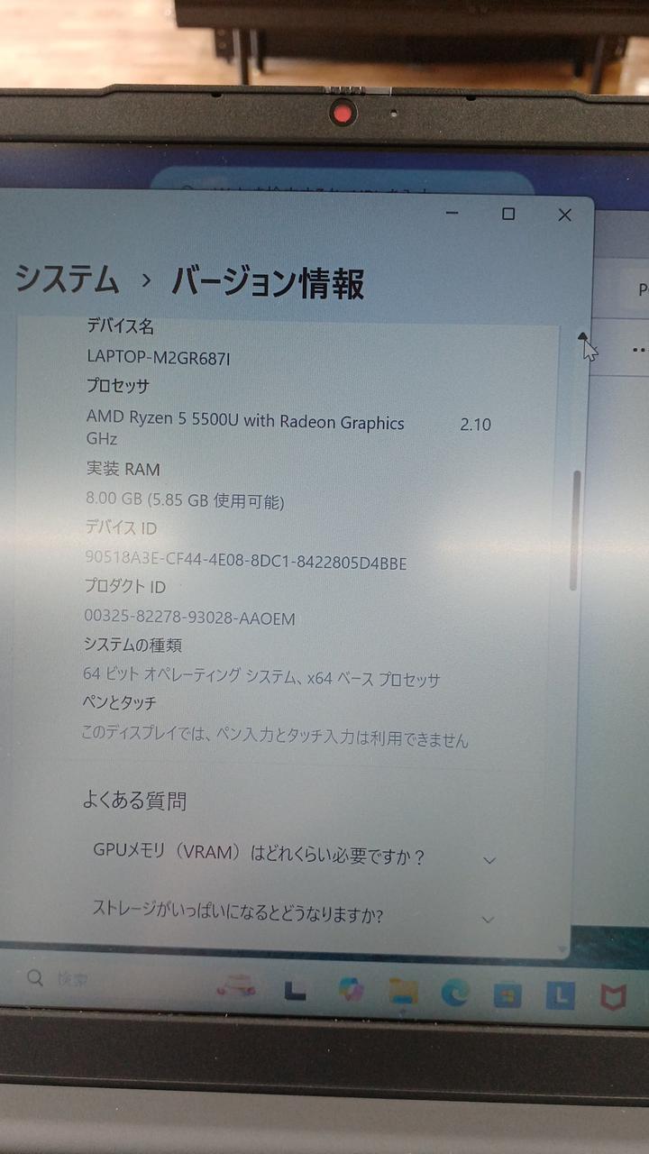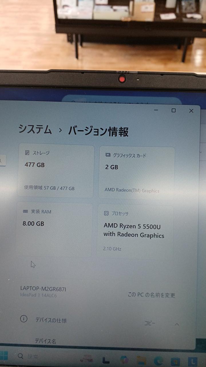 CPU:AMD Ryzen 5 5500U 2.10GHz RAM:8GB |