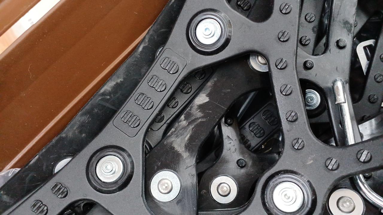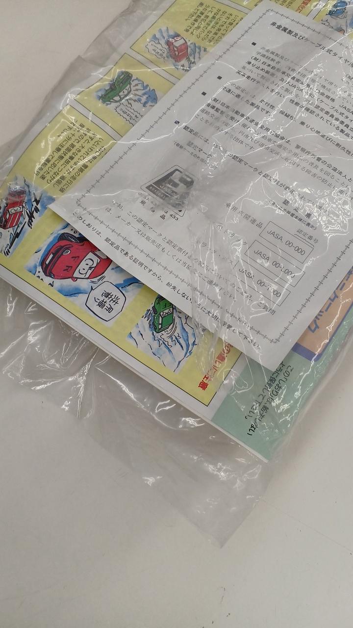 未使用品ですが、チェーンの内一つはビニール袋から出ています。キズのようなものもあります。外箱にキズ、汚れ、シールに色褪せ、たわみなどございます。説明書のビニール袋に破れあります。 |