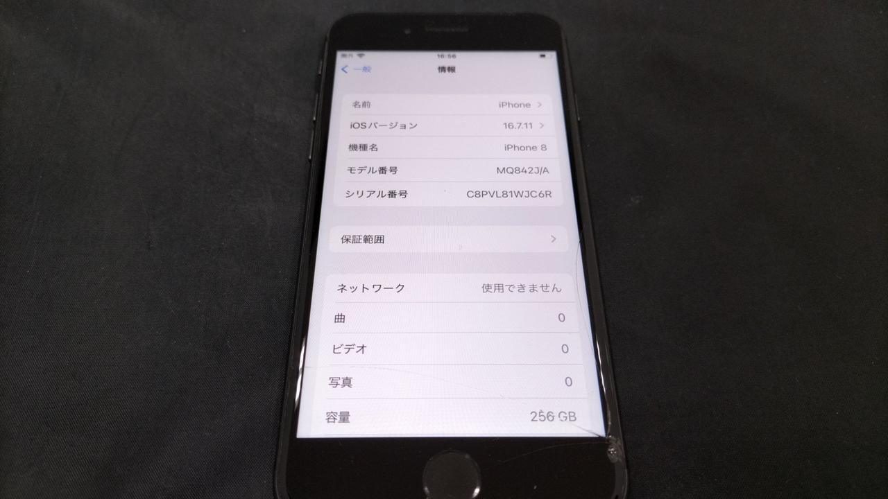 IOS:16.7.11 キャリア:KDDI 容量:256GB 最大バッテリー容量:81% |