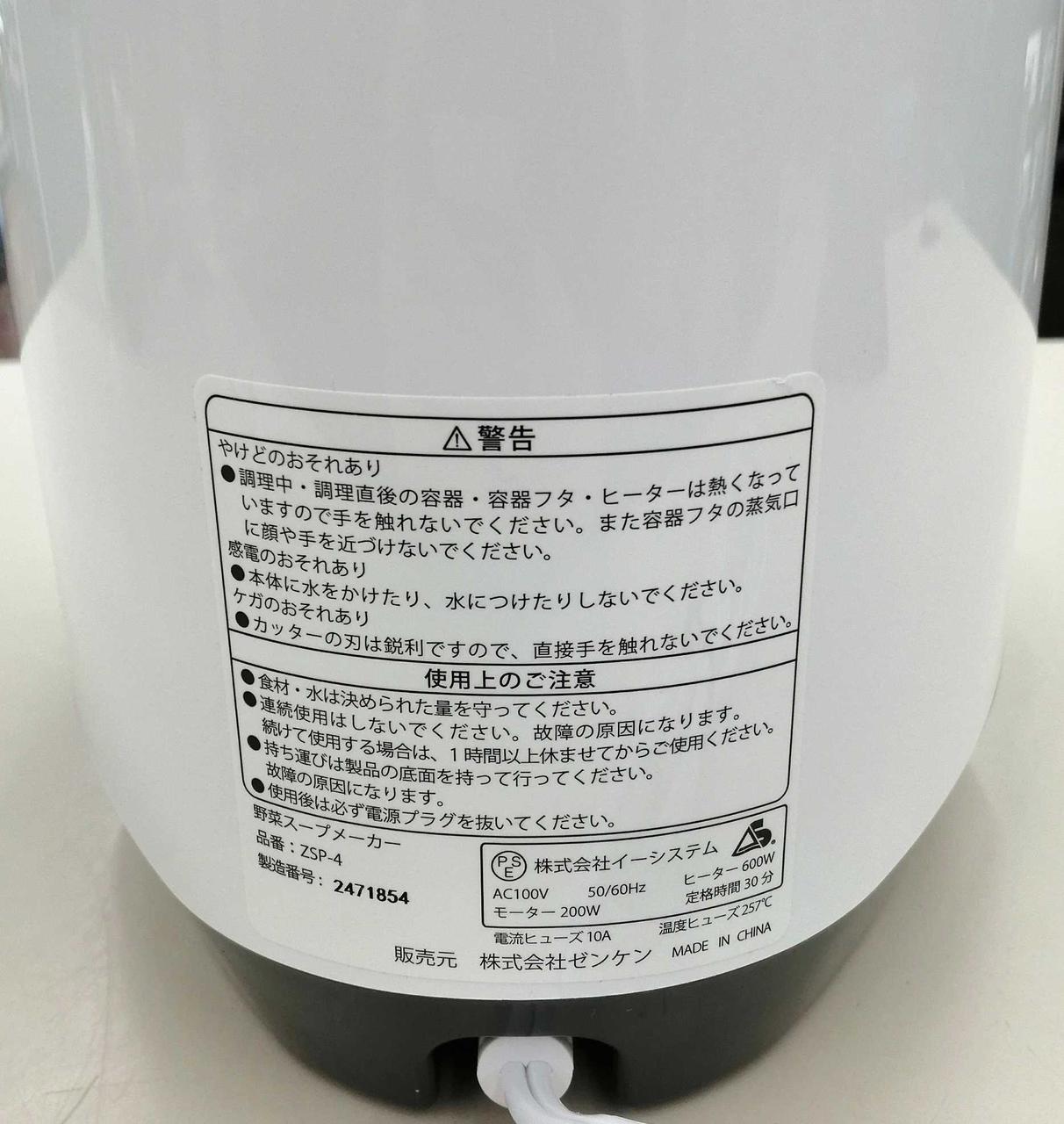 「スープ」「食べるスープ」「おかゆ」「ミキサー」の4種類のモードを搭載したスープメーカーです。 |