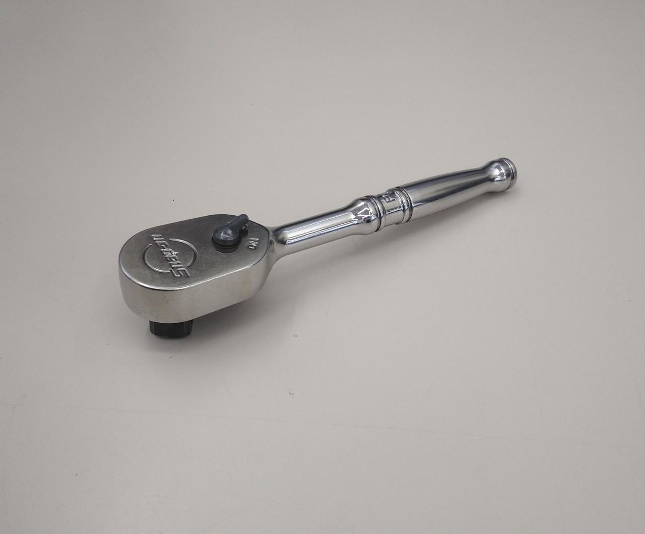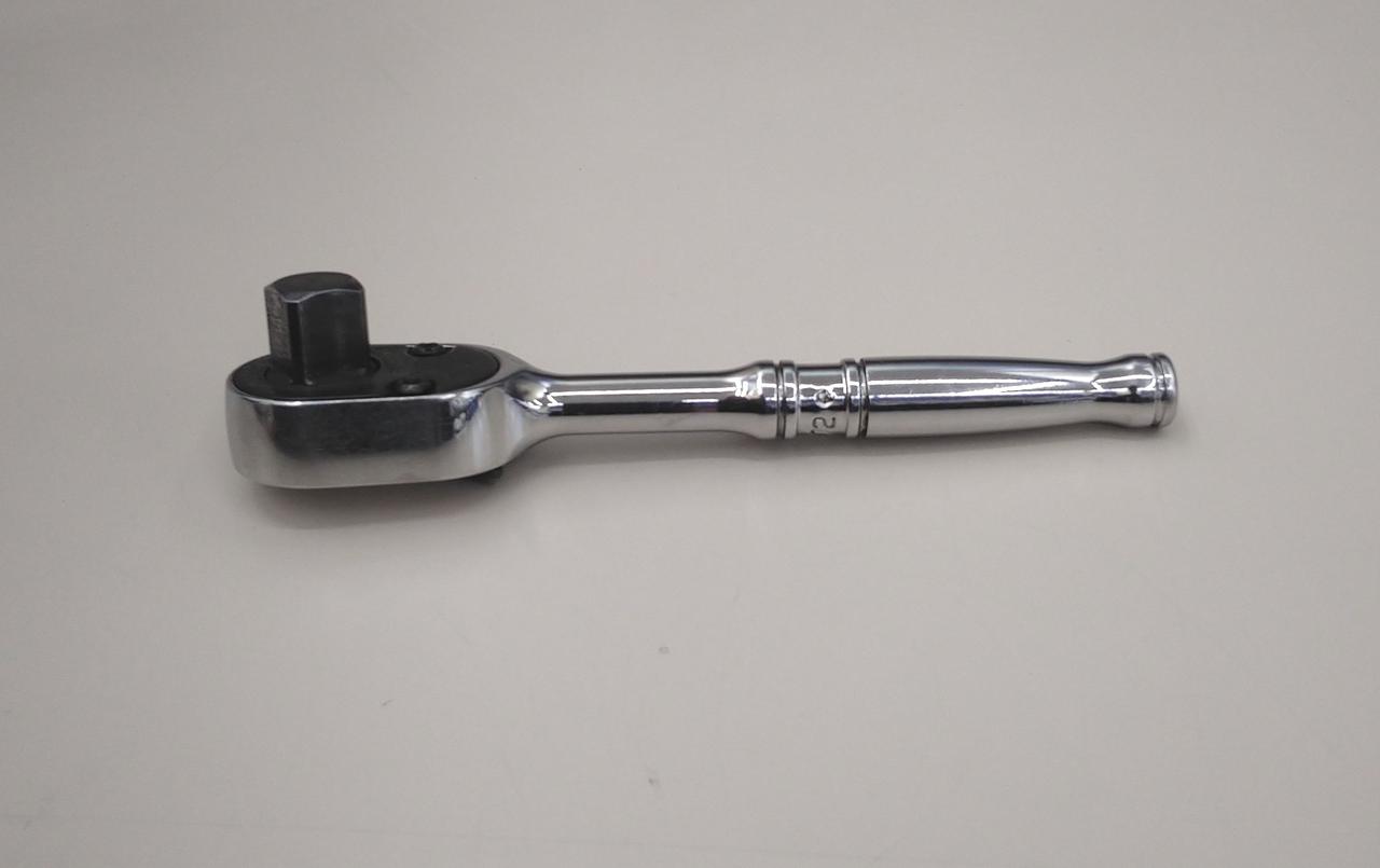 小判型ヘッドのラチェットハンドルで、1/4drラチェットと同じボディを採用 |