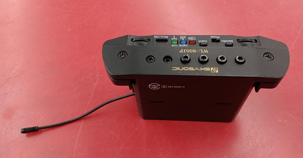 ワイヤレス機能と、サウンドホール取り付け型ピックアップが一体になったアコギ用ピックアップ |