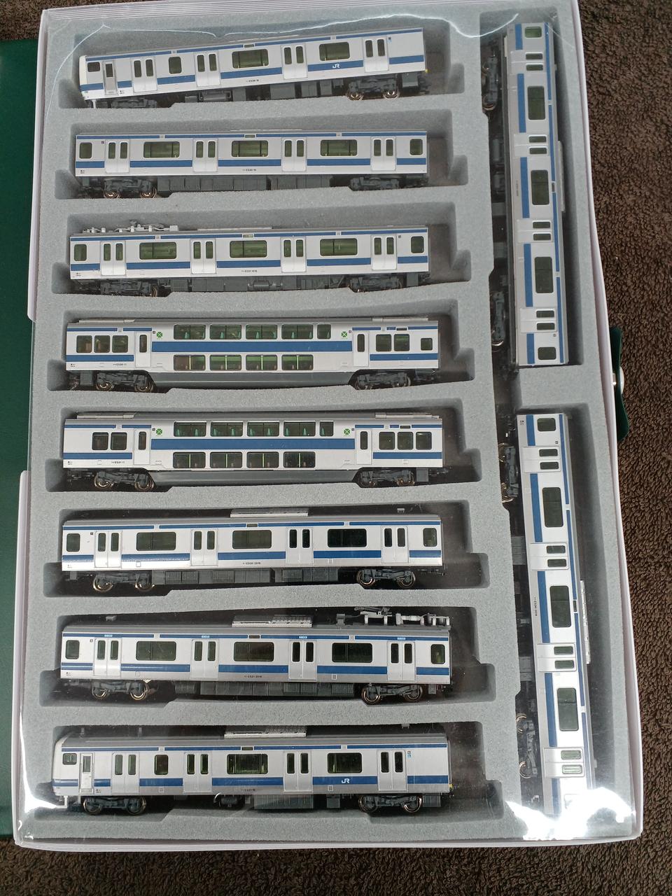 ケース内に増結2両セットが入っています。基本セットと組み合わせて実車同様を再現するための2両の中間車セットです。