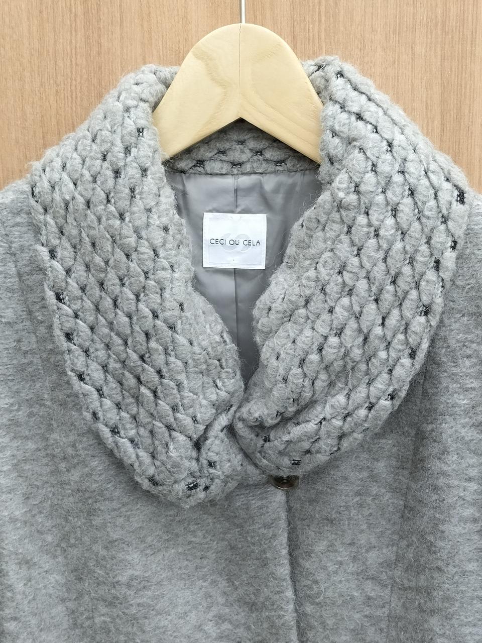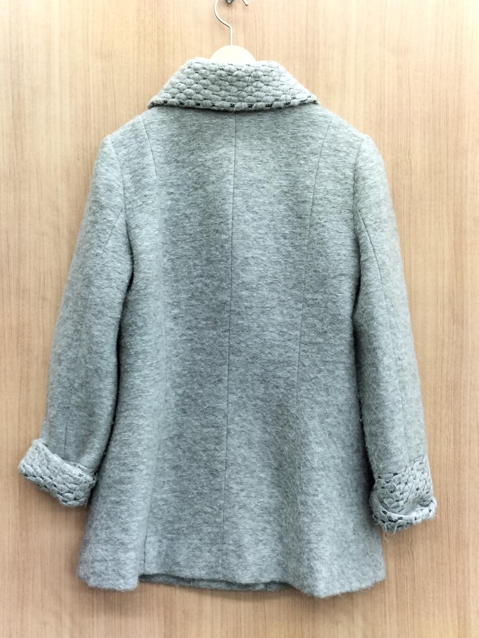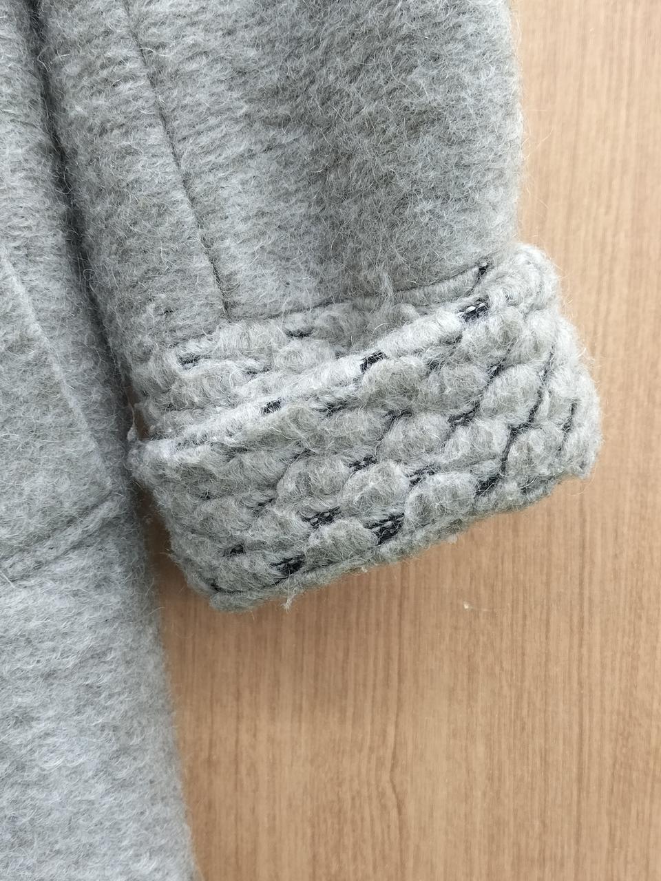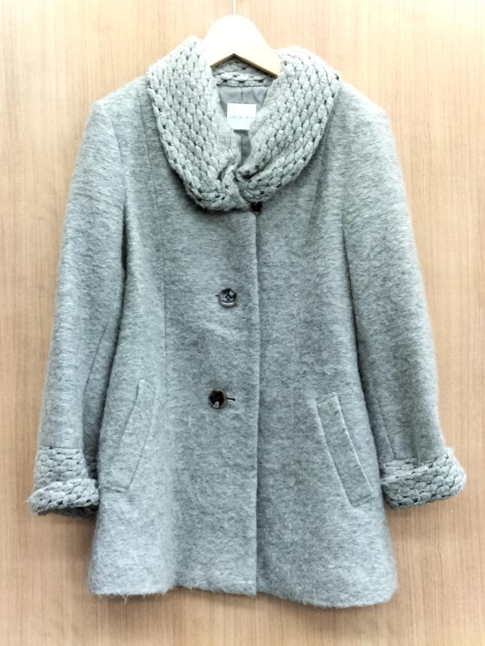 襟と袖が凝ったデザインになっている暖かなコートです!