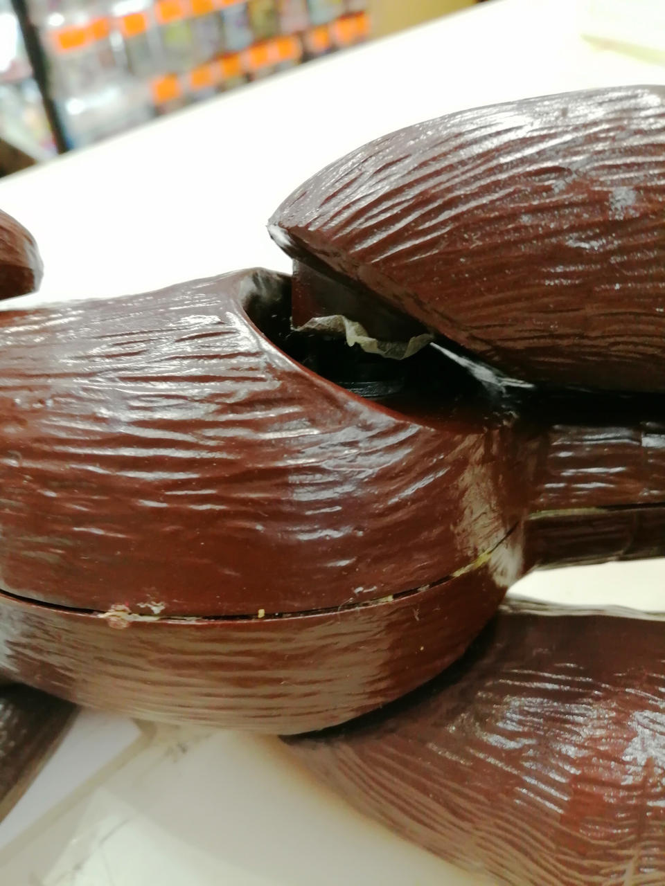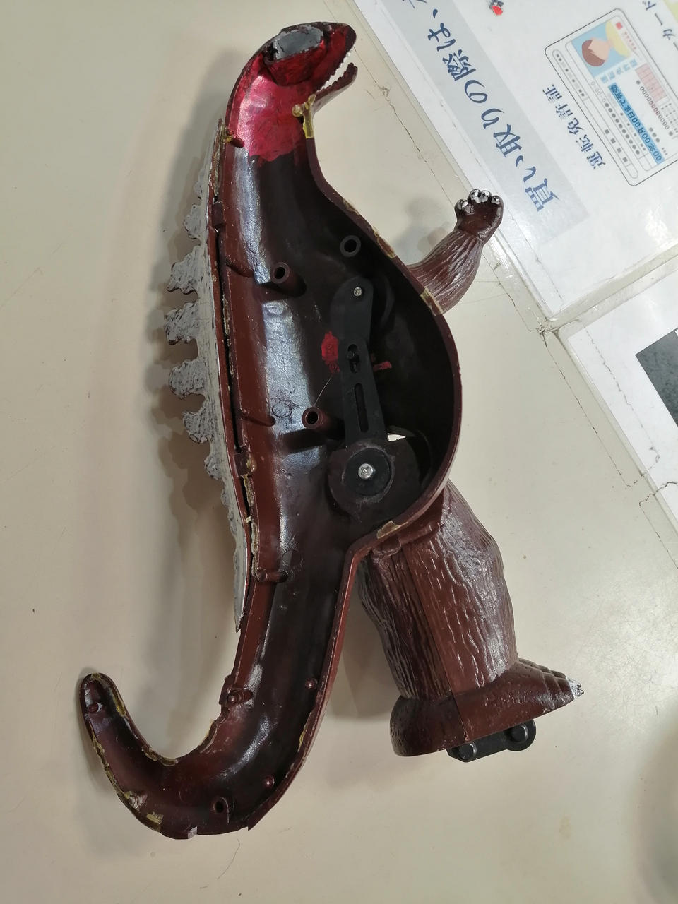 糊が剥がれて胴体が左右で分かれてしまいます。 |