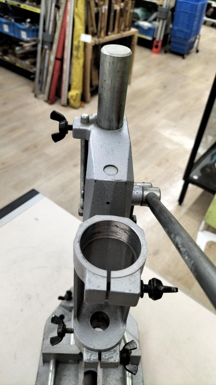 角ノミ中心より柱までの距離:125mm 最大穴あけ深さ:55mm バイス能力:85mm |