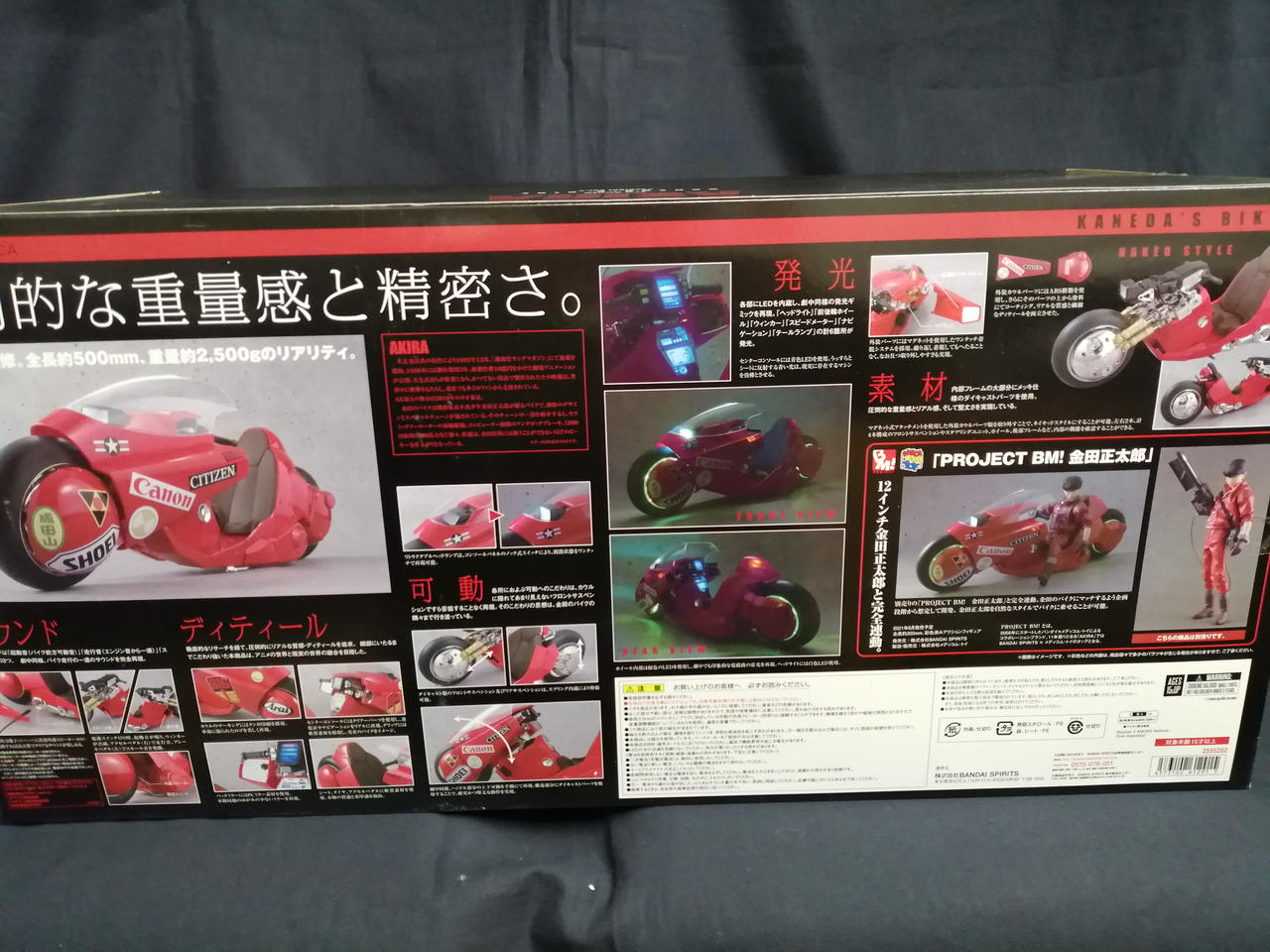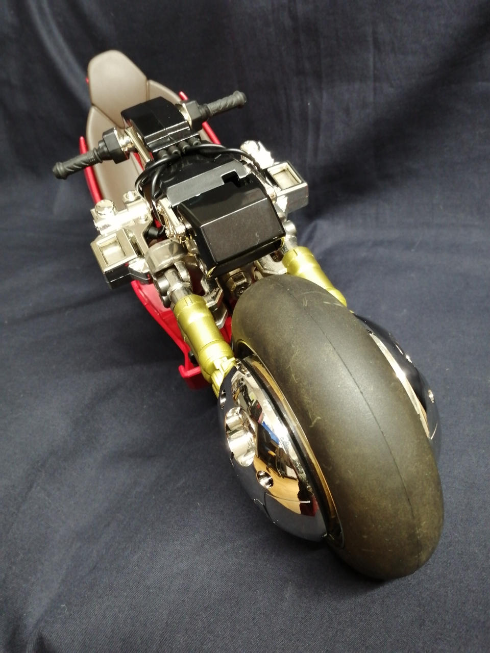 メッキパーツの表面に腐食が多数あります。カウルに傷・汚れあり。タイヤ前後ともに汚れています。箱に傷み多数あり。 |