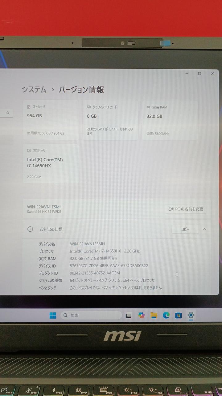 型番:SWORD 16 HX B14VFKG 5002JP