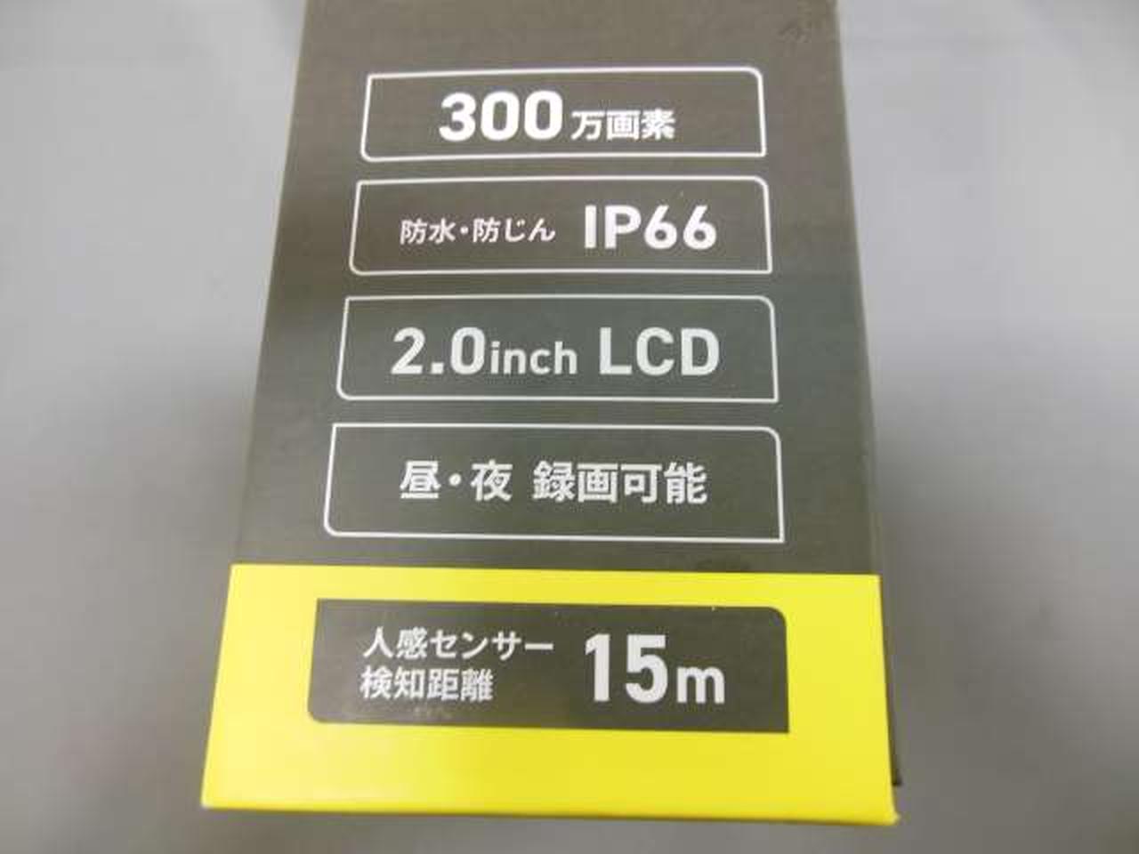 300万画素の高画質 2.0インチカラーモニター内蔵 夜間照明:940nm赤外線LED レンズ:F=1.8 FOV=90 |