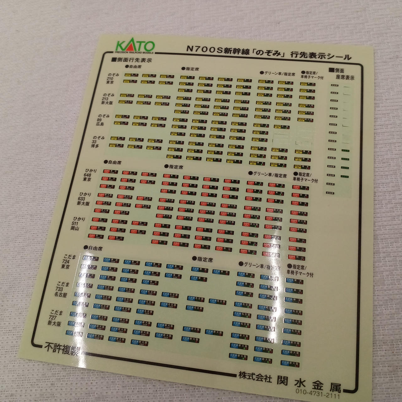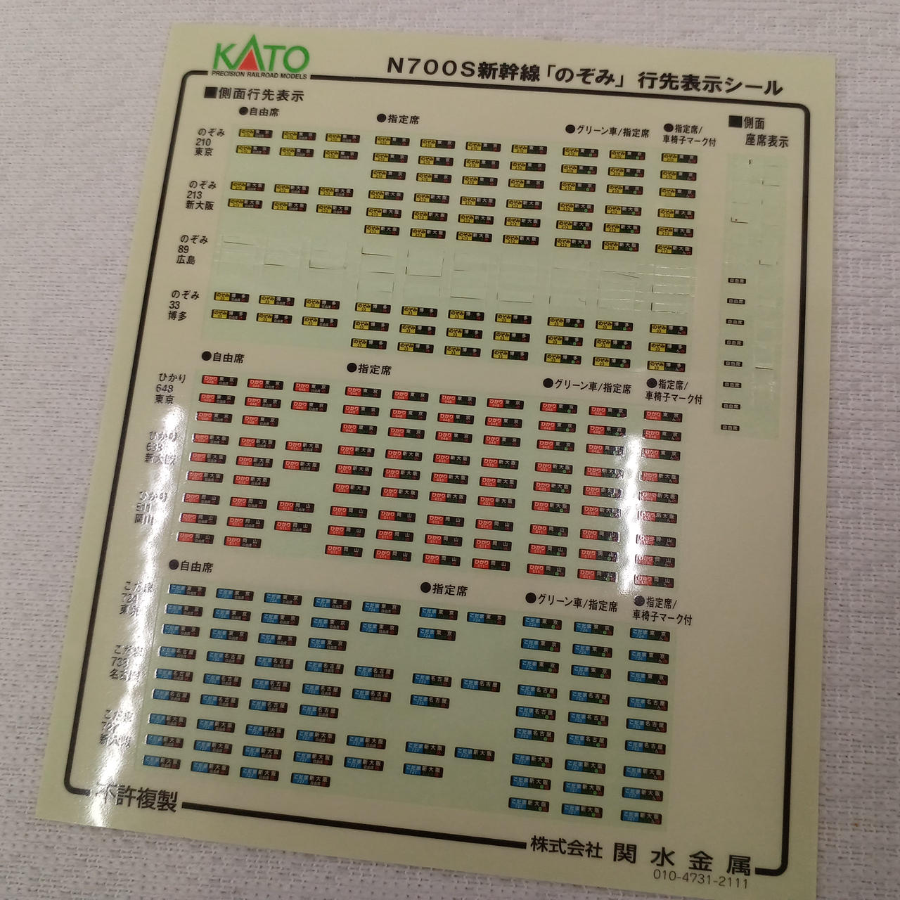 取扱説明書、行先表示シール他車両についている物のみです。 |