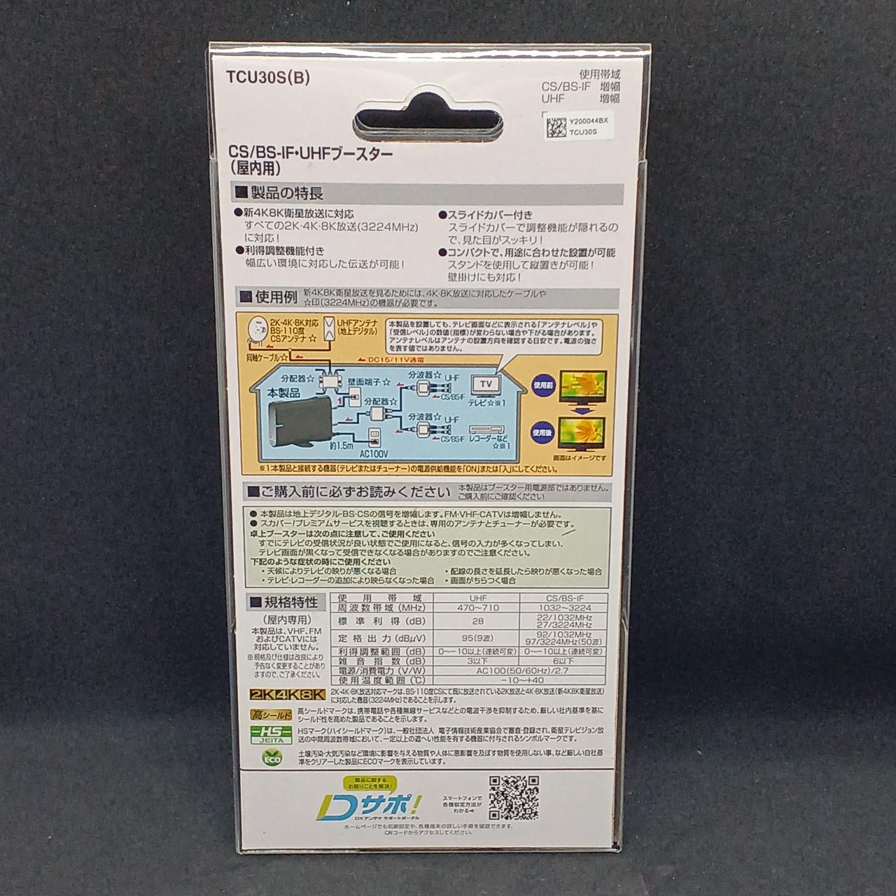 4K8K衛星放送(3224MHz)対応の、CS/BS-IF、UHFを増幅する卓上用ブースター |