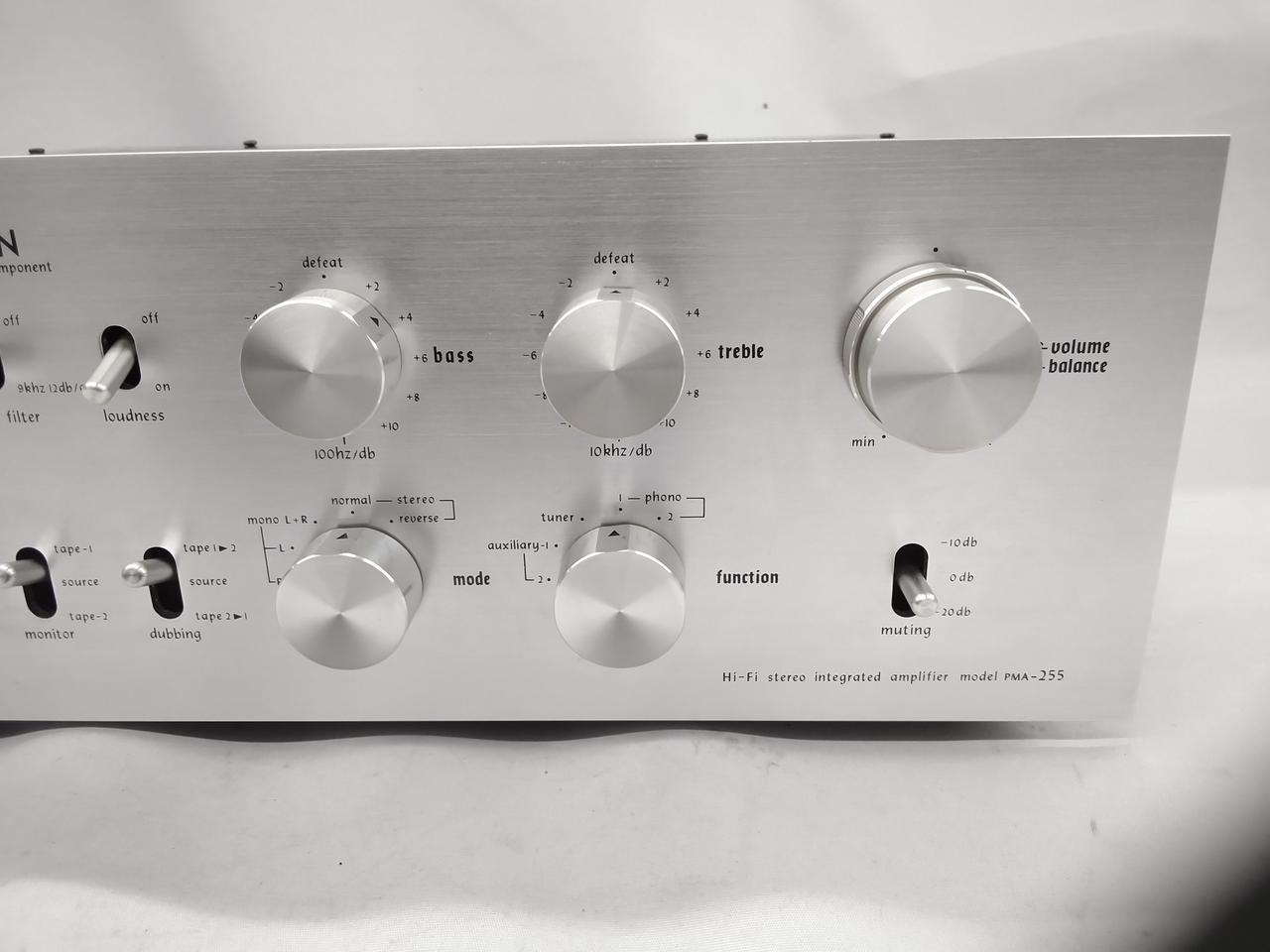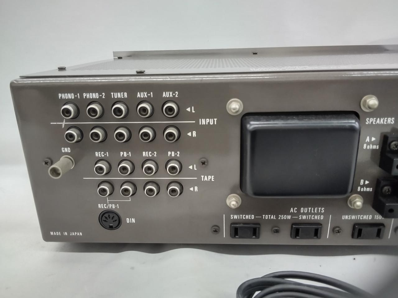 パワーアンプの出力端には特性のよく揃った3重拡散メサ型PNP/NPN80W級のパワートランジスタを採用 パワートランジスタをスピーカー回路短絡などによる破壊から守るため、応答速度の速いプロテクション回路を備えています ※付属品、本体のみ |