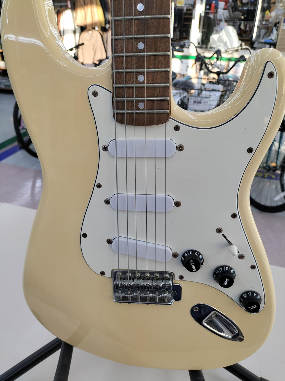 定番ストラトキャスタ-タイプ。ピックアップ交換されているようです |