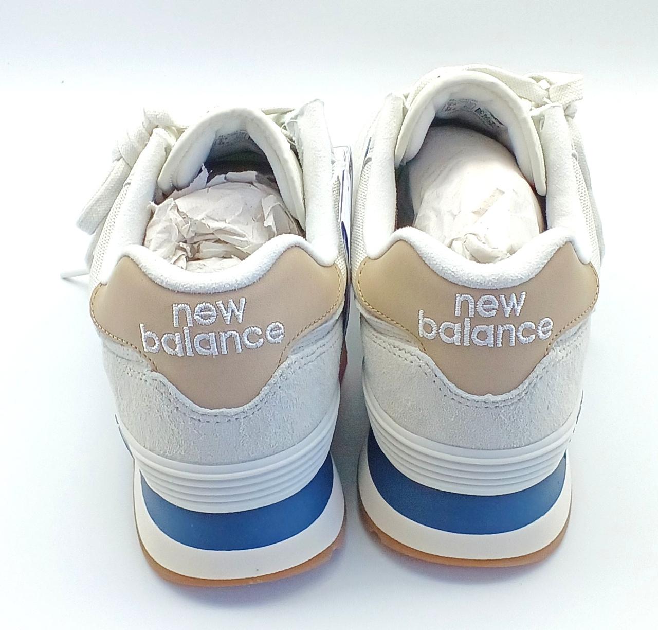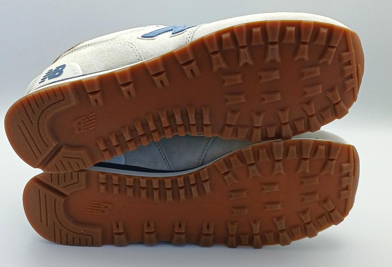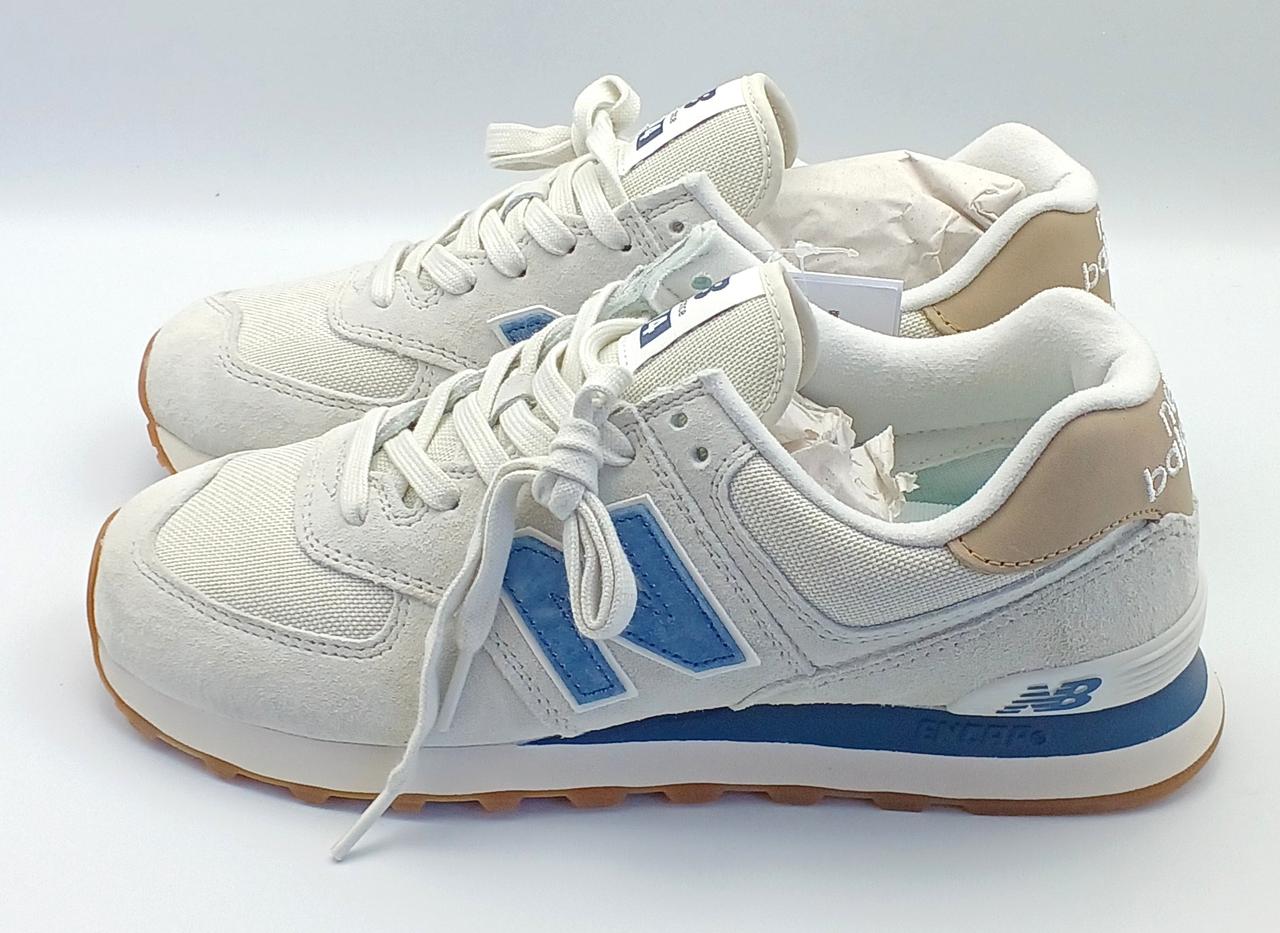 オフロードシューズ「576」のDNAを受け継いだ「574」の伝統的なシルエット。グレーを基調にネイビーのアクセントがあしらわれたカラーリングです。
