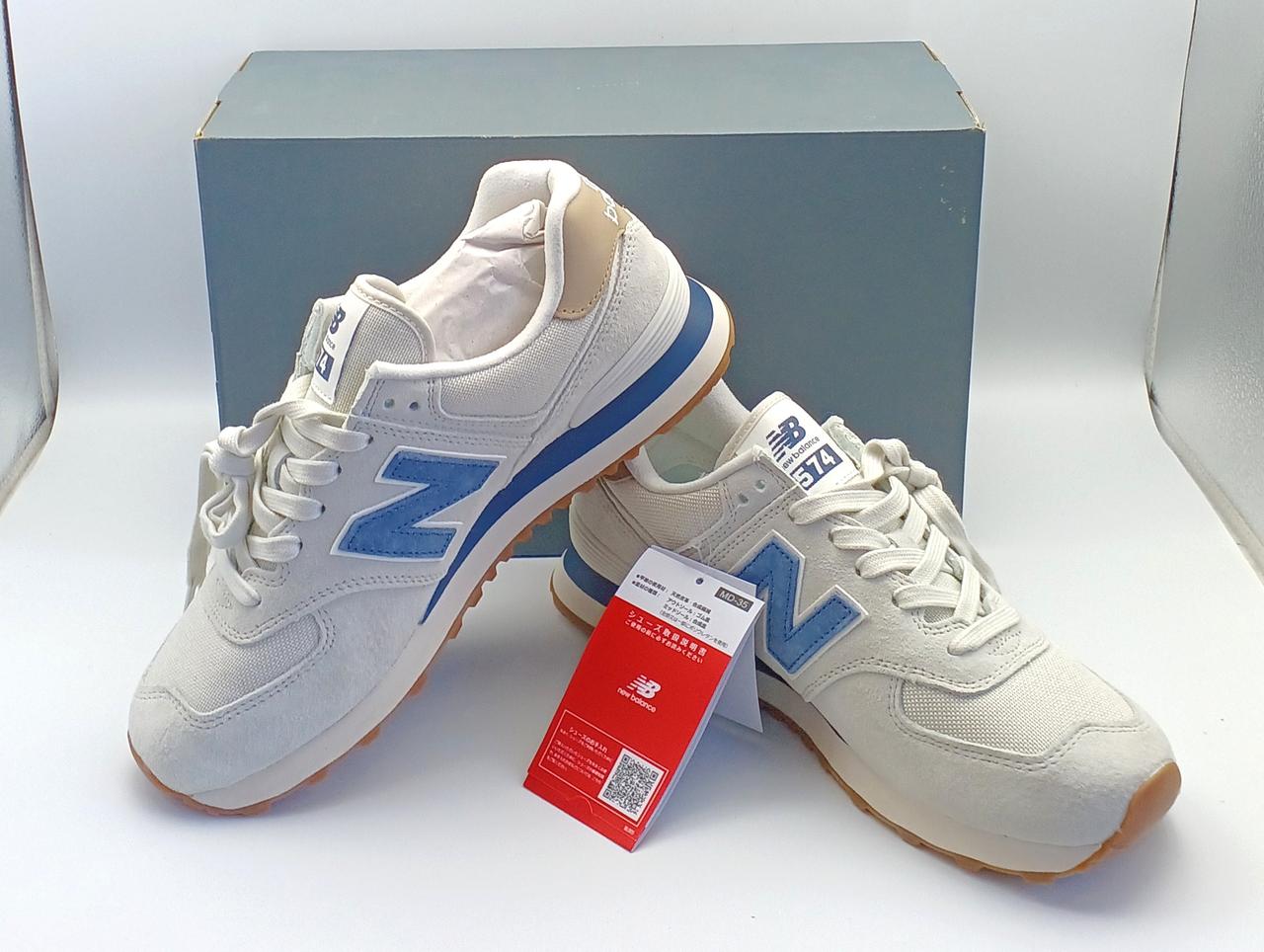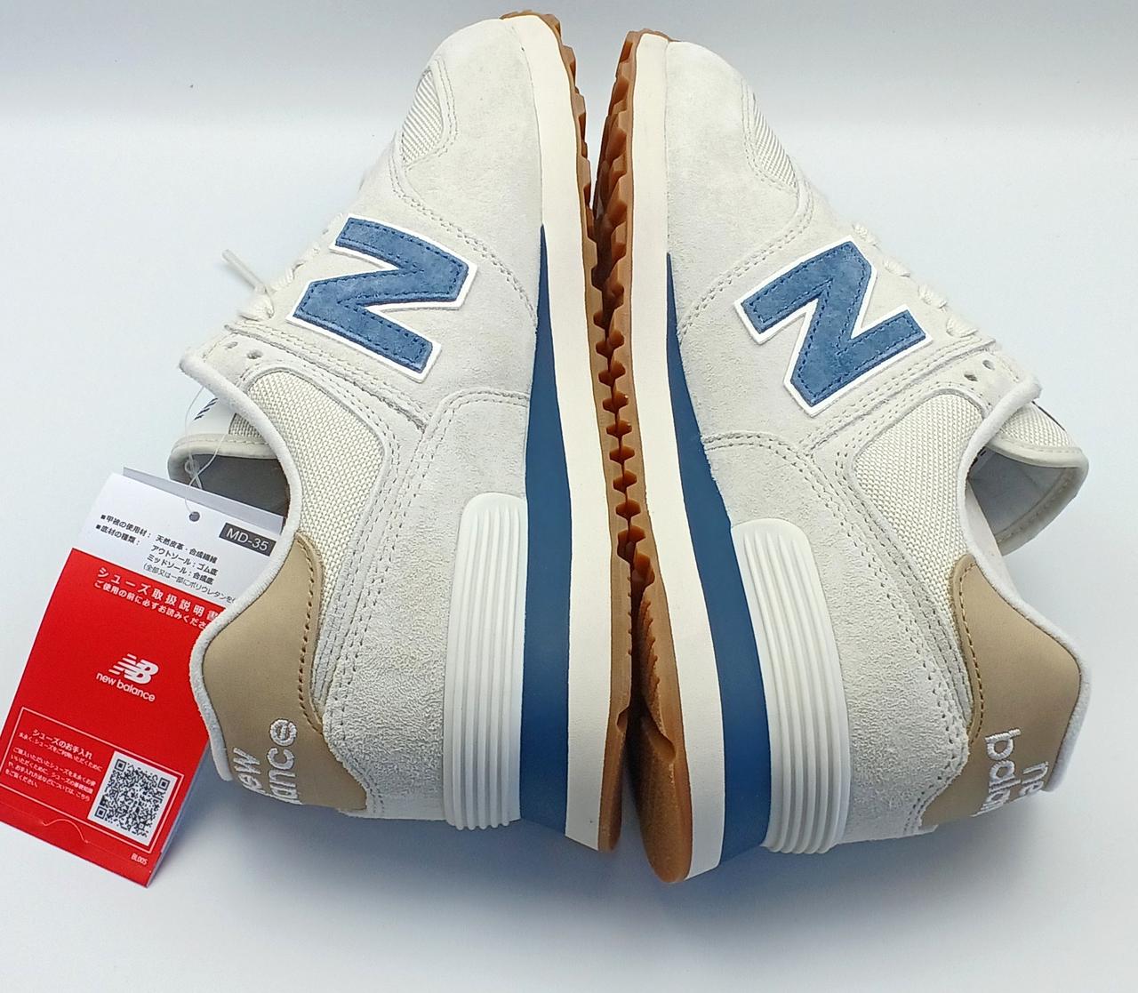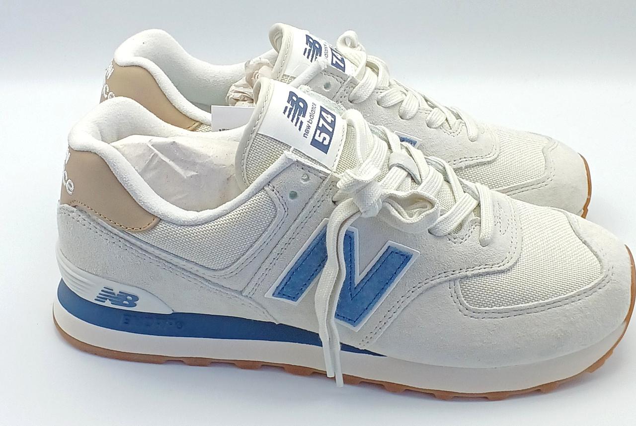 オフロードシューズ「576」のDNAを受け継いだ「574」の伝統的なシルエット。グレーを基調にネイビーのアクセントがあしらわれたカラーリングです。