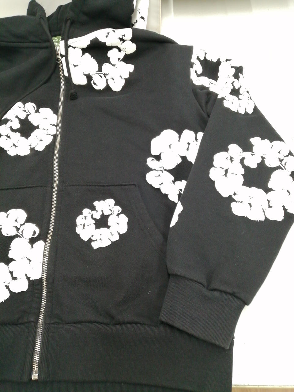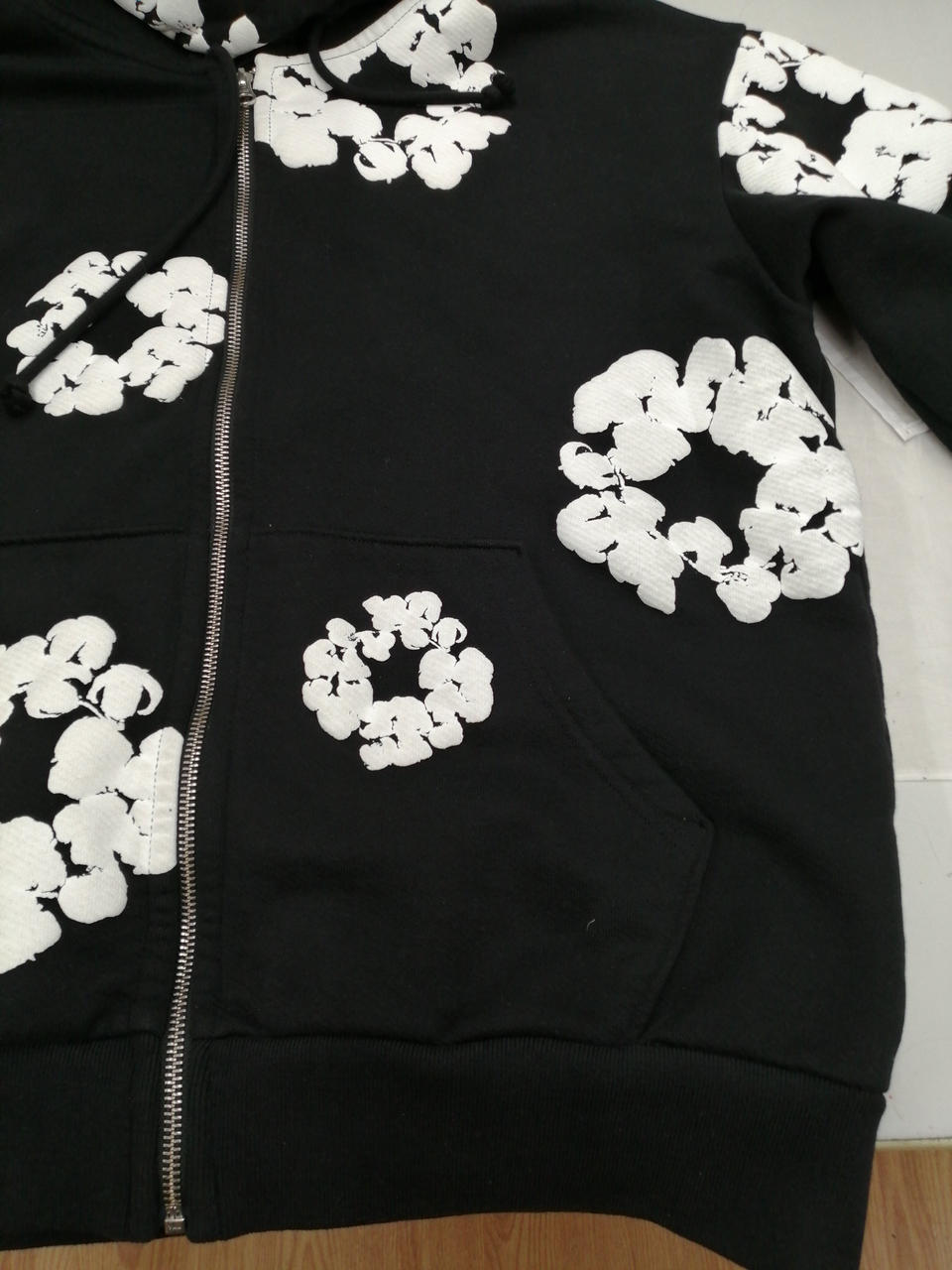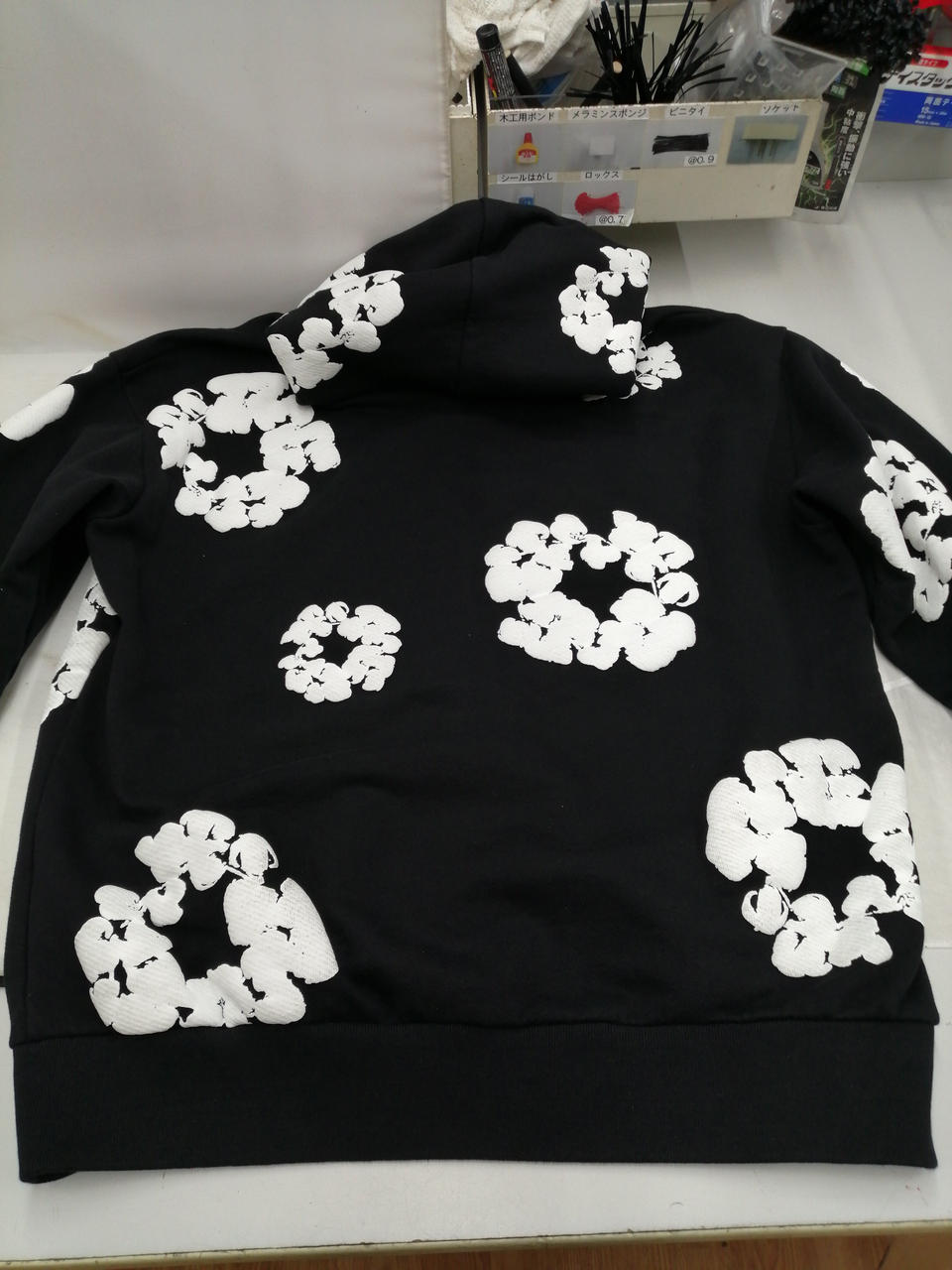 ブラックとホワイトのシックな色合いに、花柄があしらわれた大人っぽくかつかわいらしいデザインのパーカーとなっております!