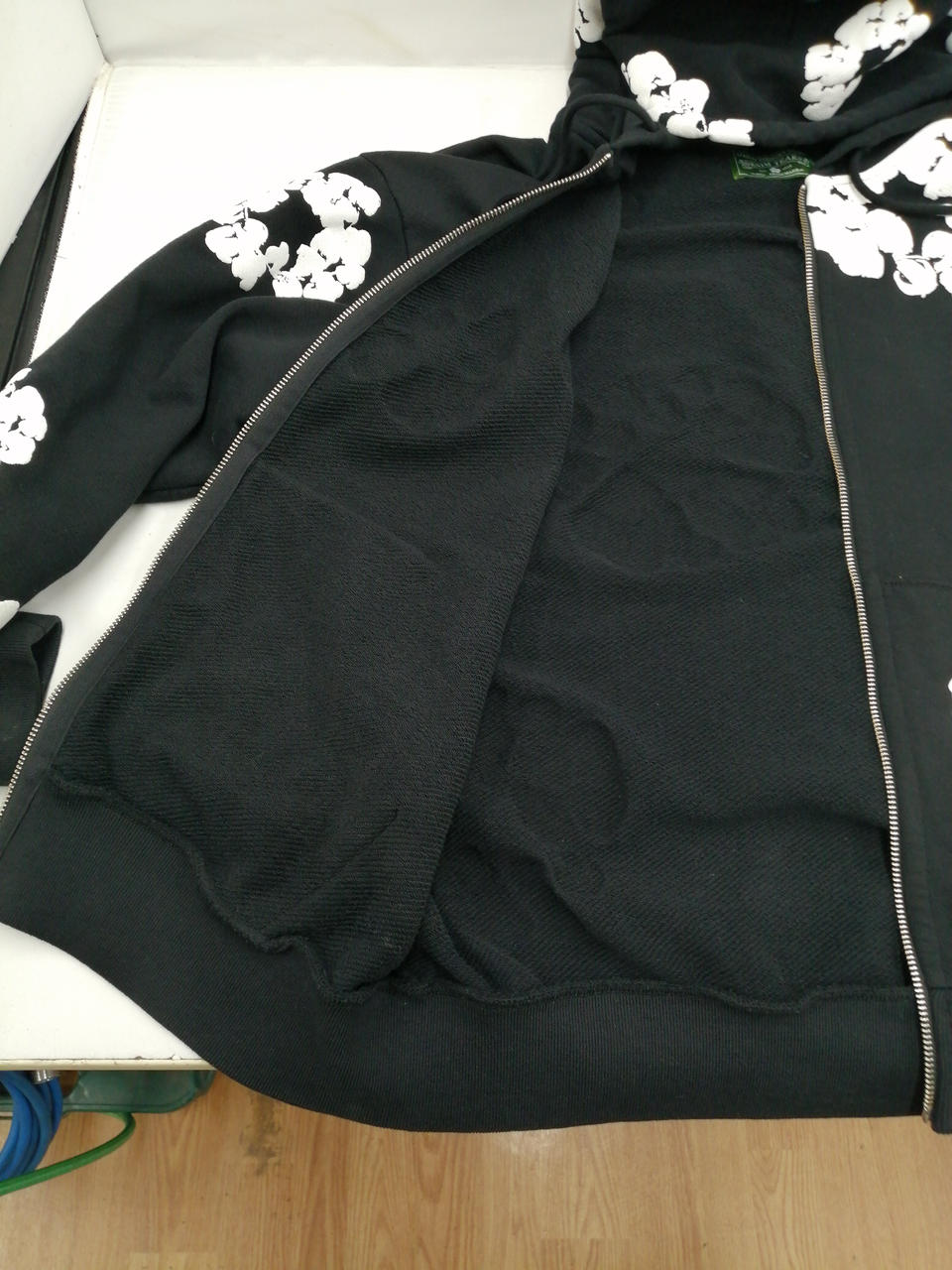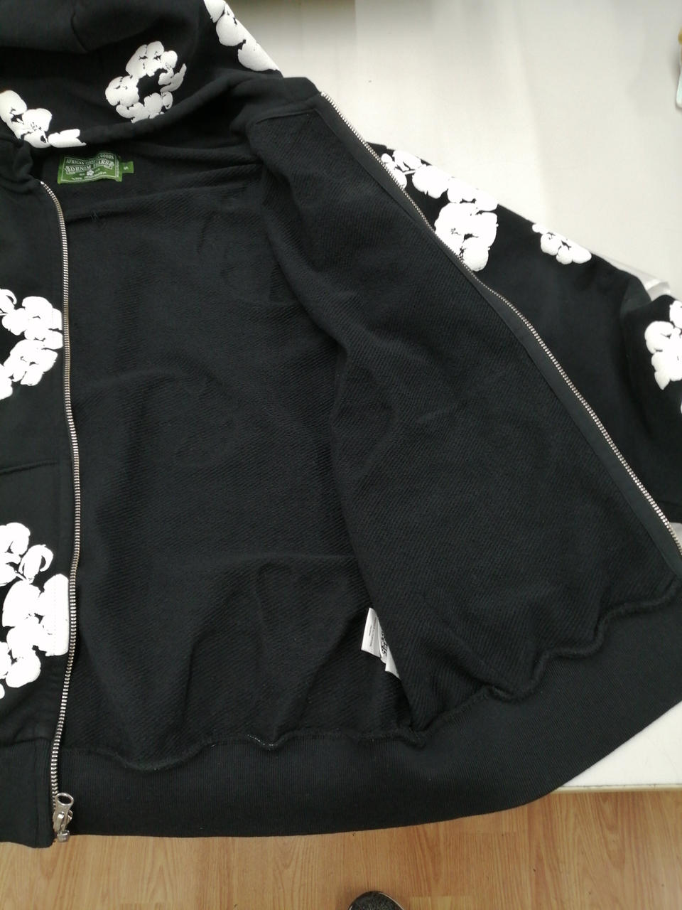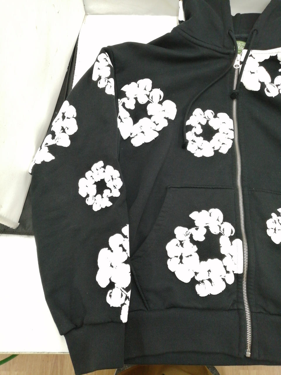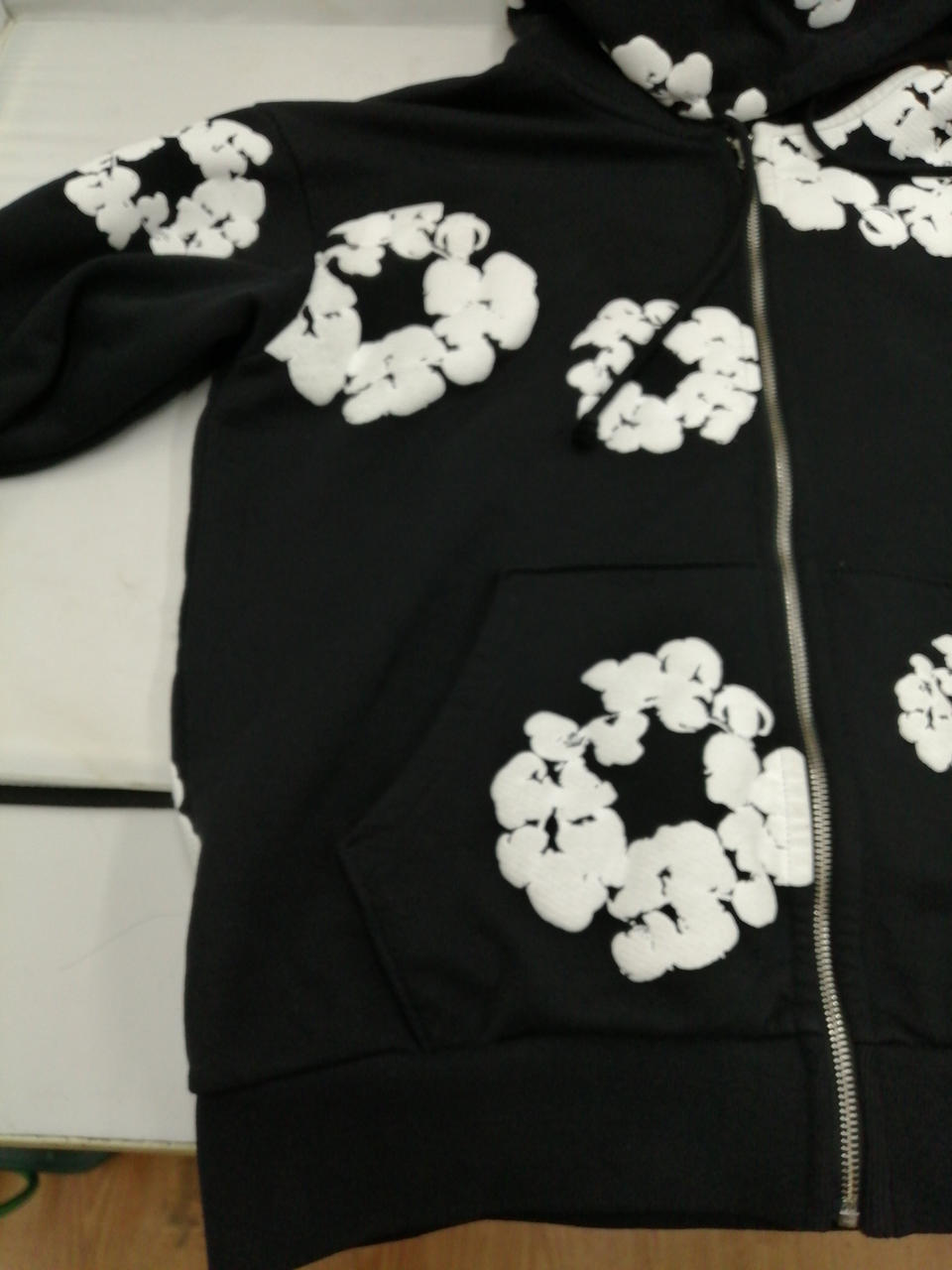 ブラックとホワイトのシックな色合いに、花柄があしらわれた大人っぽくかつかわいらしいデザインのパーカーとなっております!