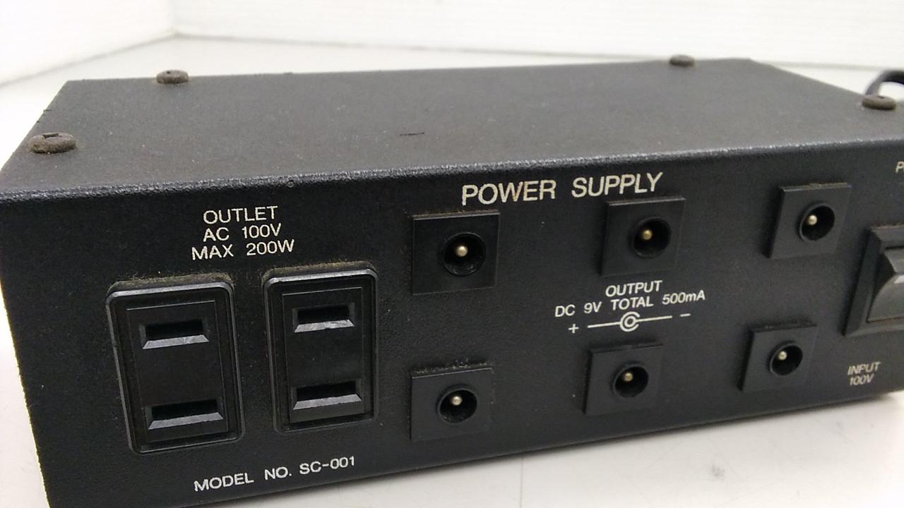 6口の9VDC出力とは別に、コンセントの差し口が二つある便利なパワーサプライ |