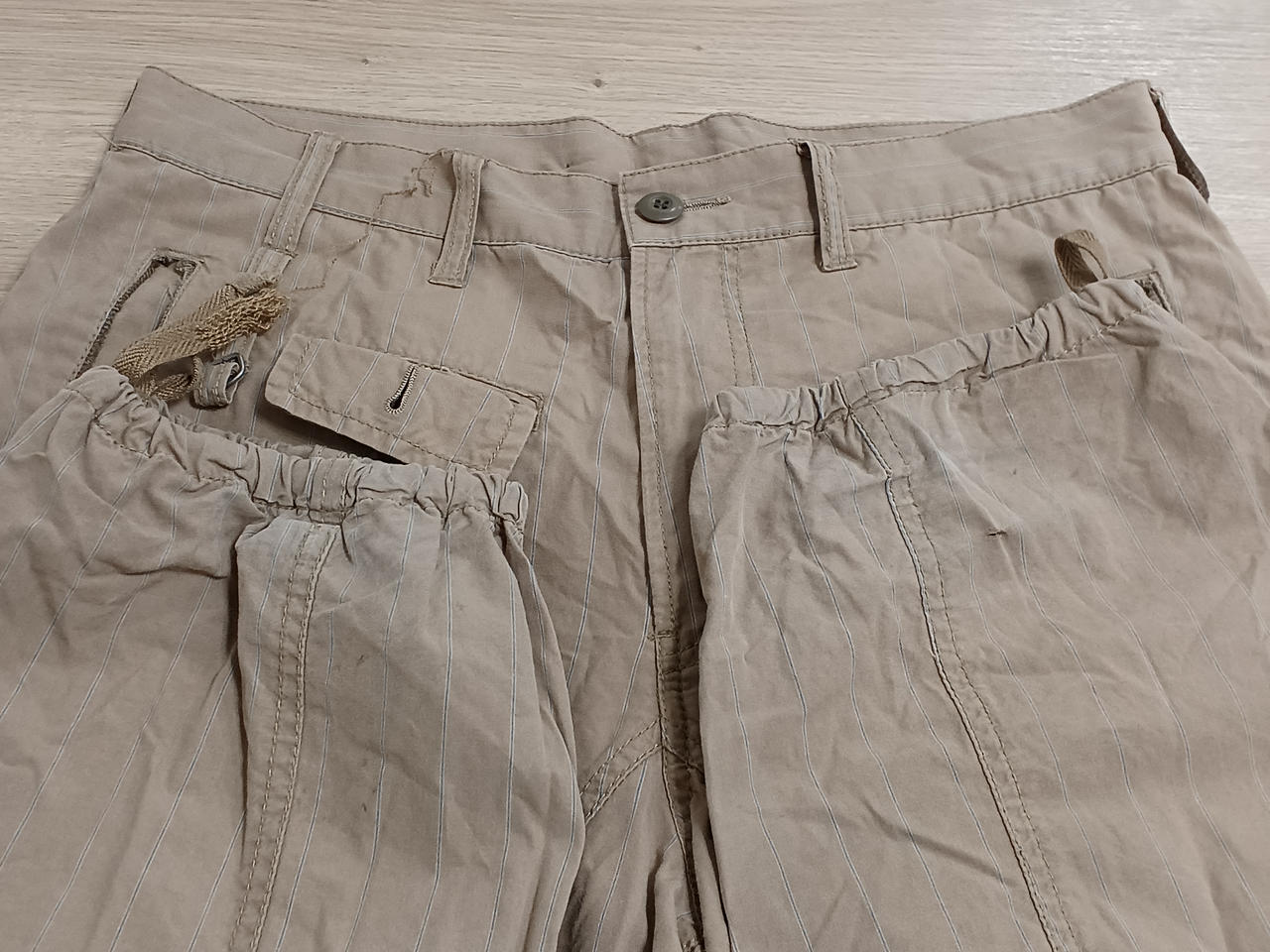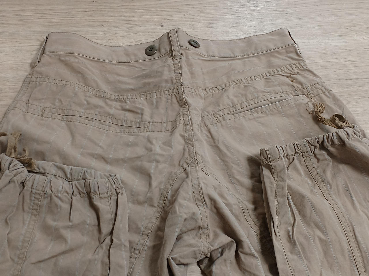 全体的な色褪せ、裾に汚れや小さな穴がございます。お写真にてご確認ください。