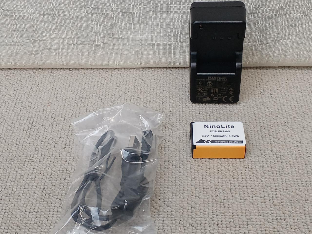 化粧箱・取扱説明書・接続ケーブル・バッテリー(社外品)・充電器