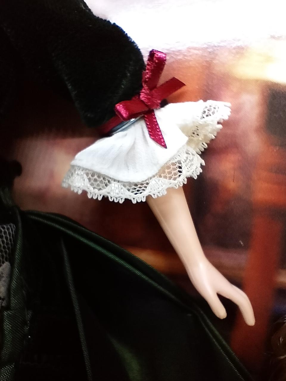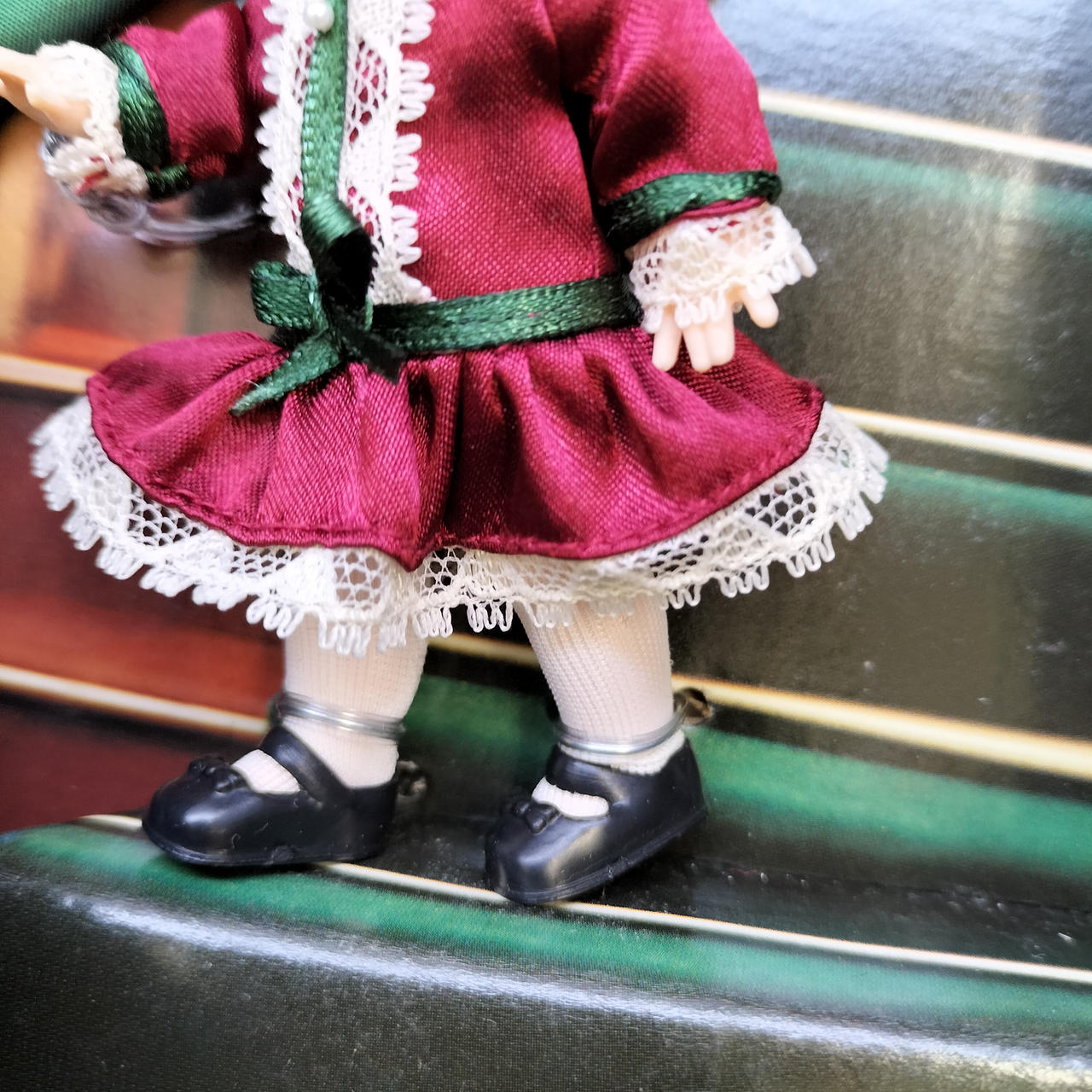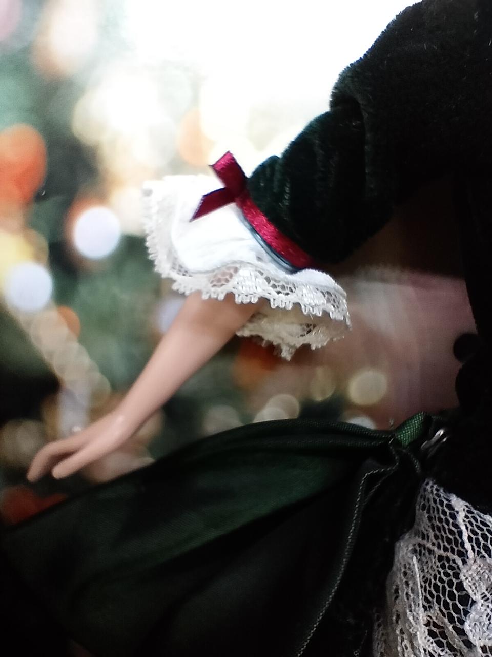 タイムレスな「赤」の美しさ ビクトリア朝時代の冬を象徴する、深いボルドー(バーガンディ)のベルベット風ドレスが圧巻です。ゴールドの刺繍や白いフェイクファーのトリミングが、高級感と温かみを同時に演出しています。