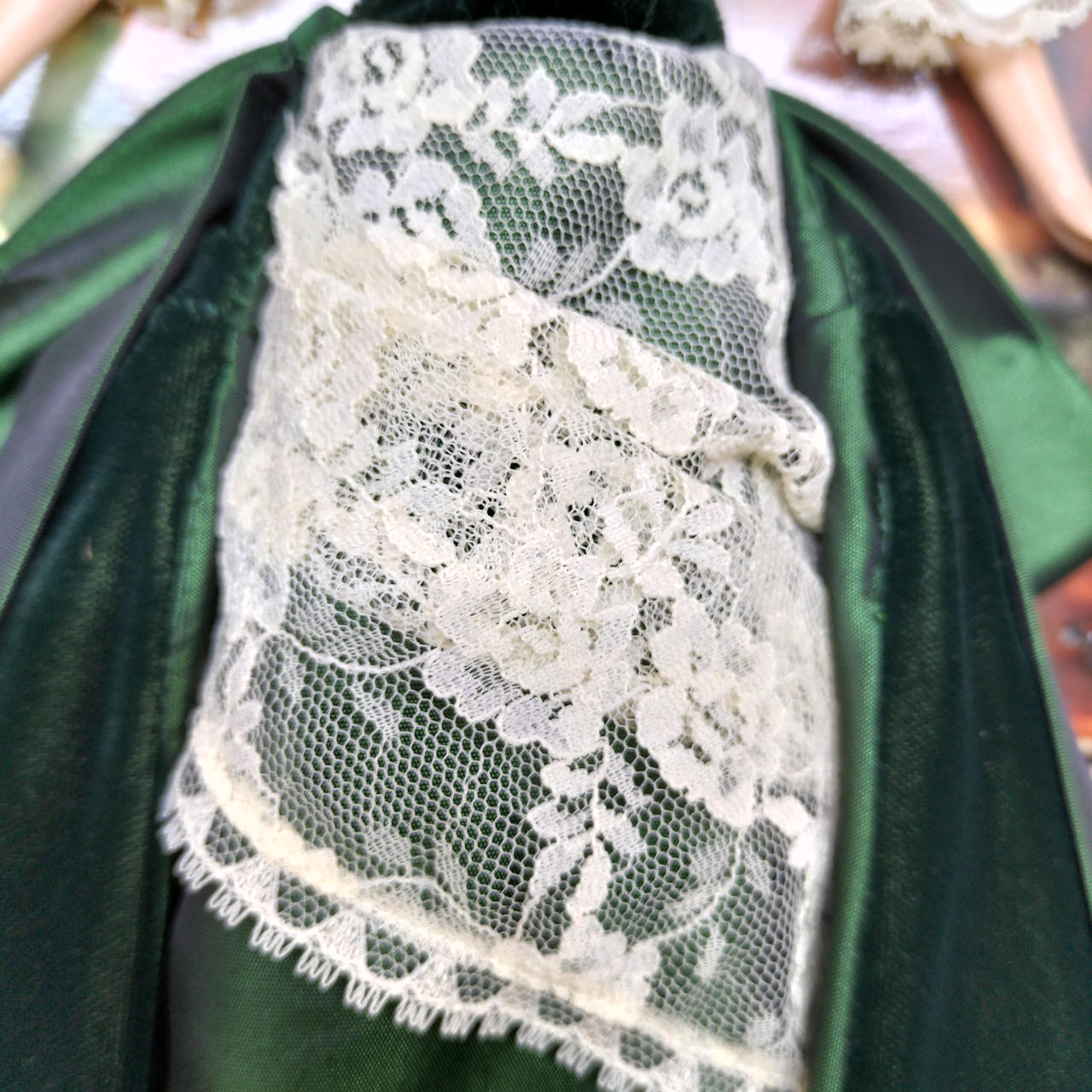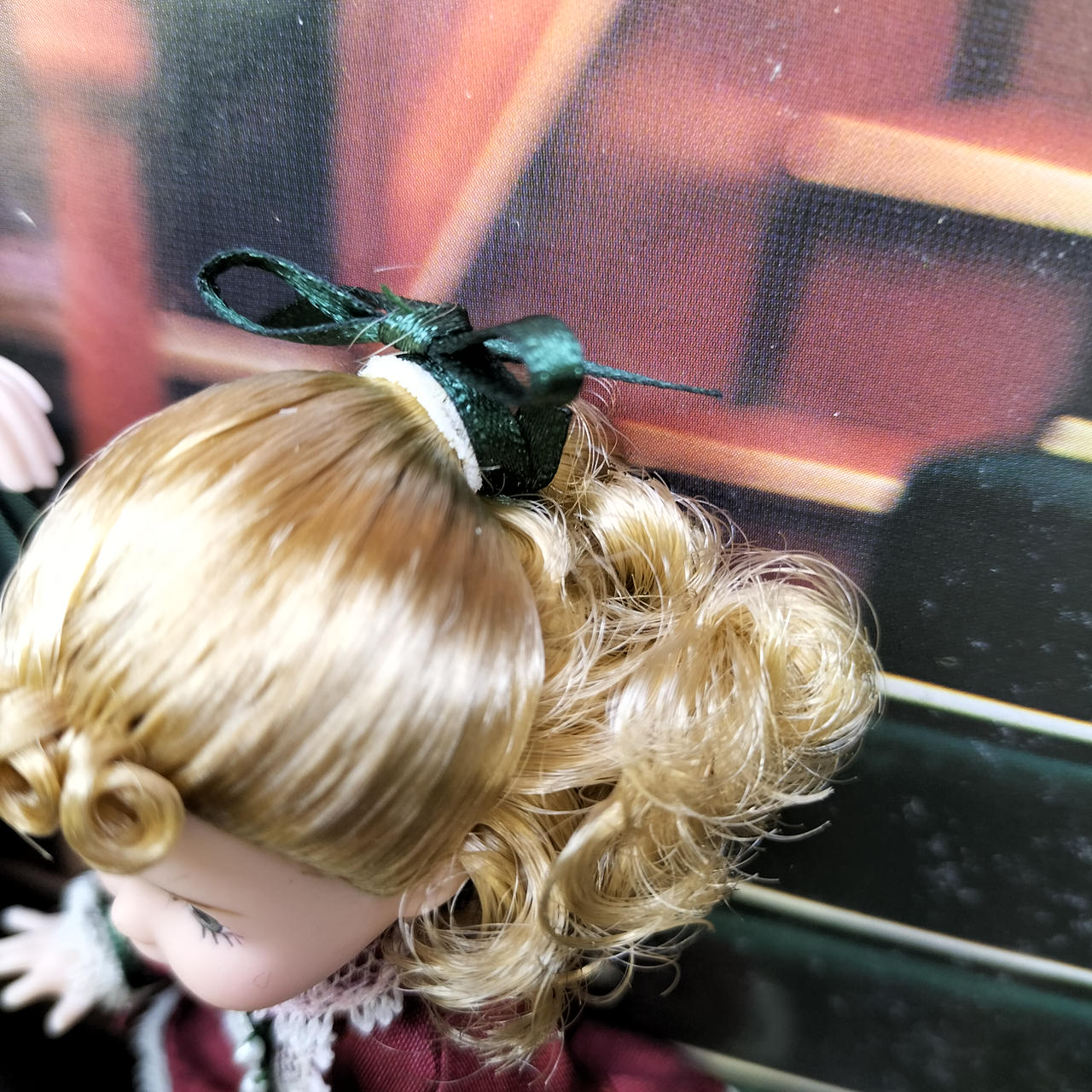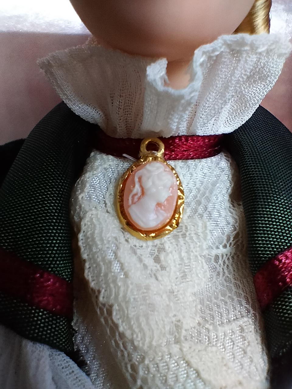 タイムレスな「赤」の美しさ ビクトリア朝時代の冬を象徴する、深いボルドー(バーガンディ)のベルベット風ドレスが圧巻です。ゴールドの刺繍や白いフェイクファーのトリミングが、高級感と温かみを同時に演出しています。