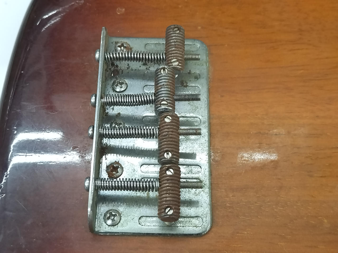 ジャック・各ノブの接触悪いです。4弦ペグ破損あり |