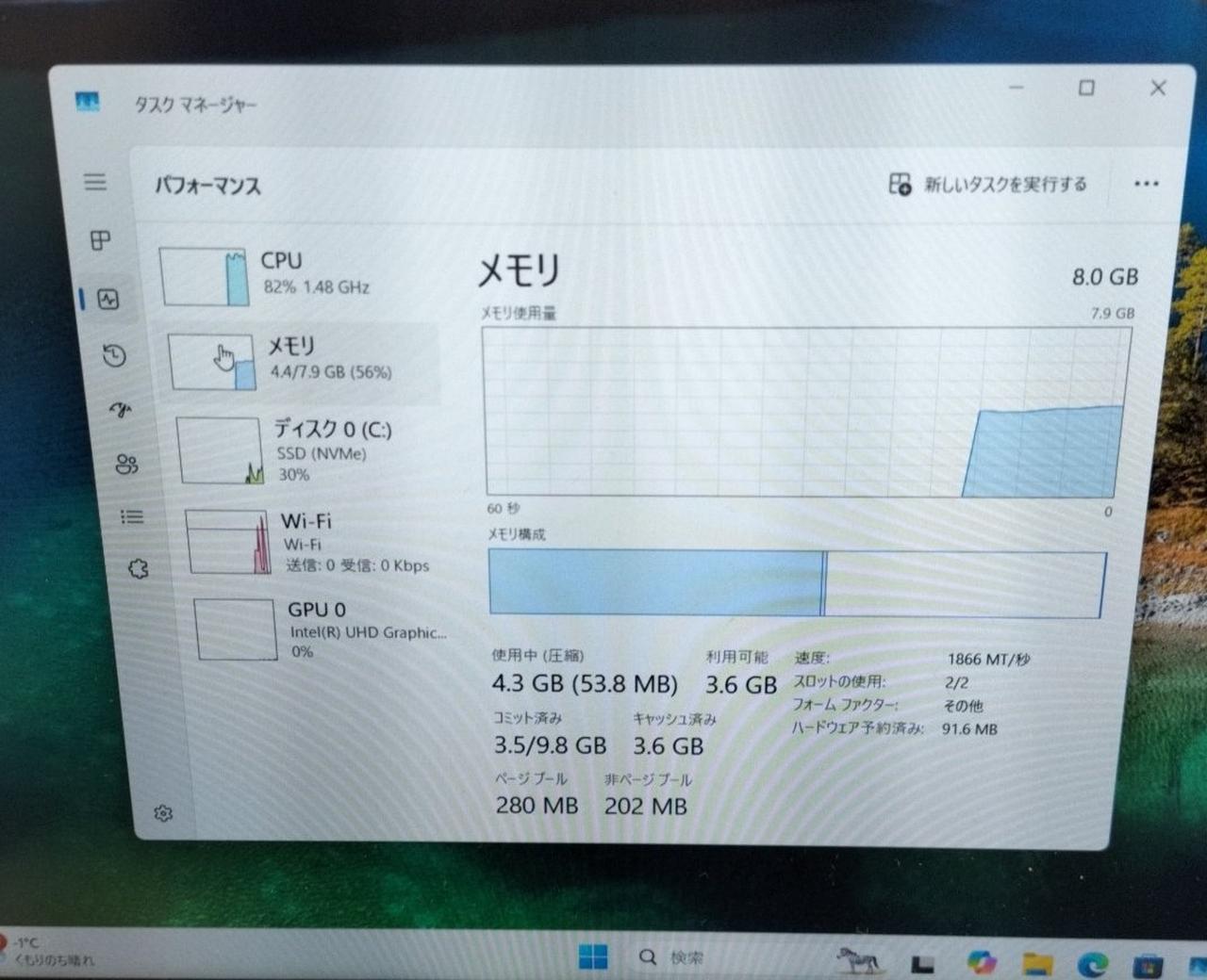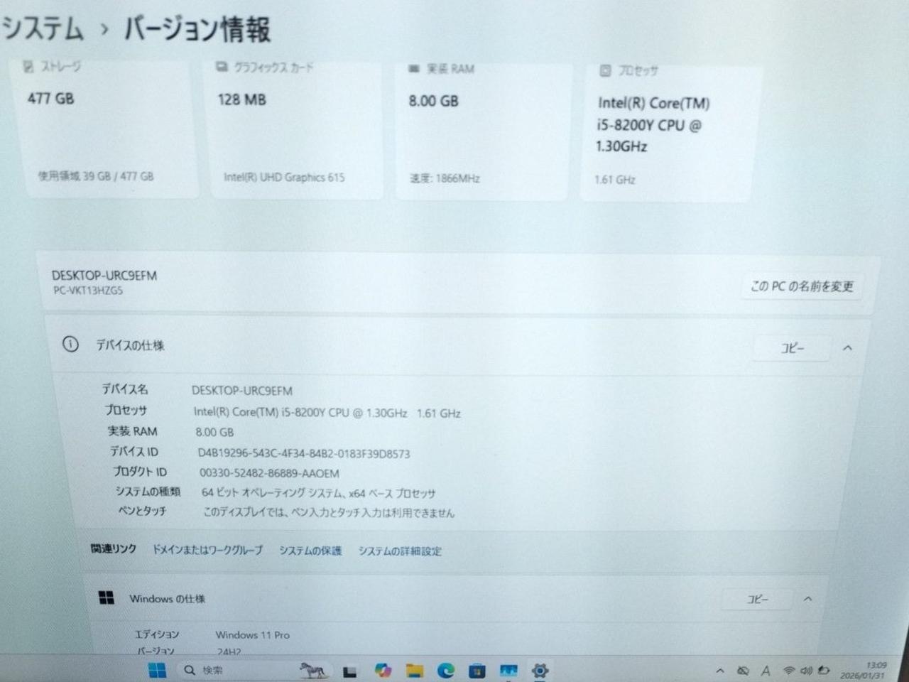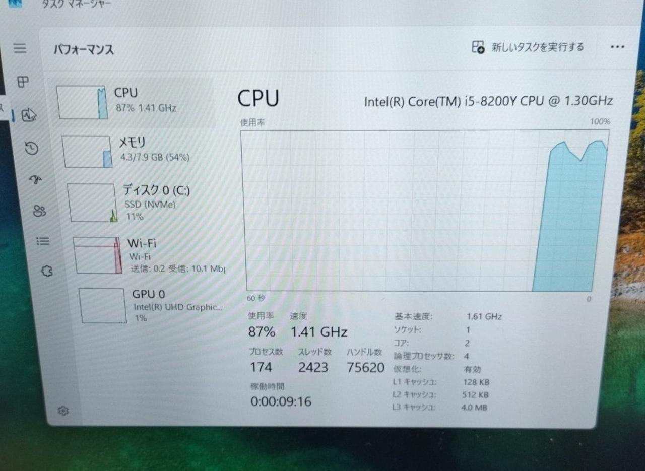 OS:Windows11 Pro 64bit CPU:Core i5-8200Y 1.30GHz 2コア4スレッド