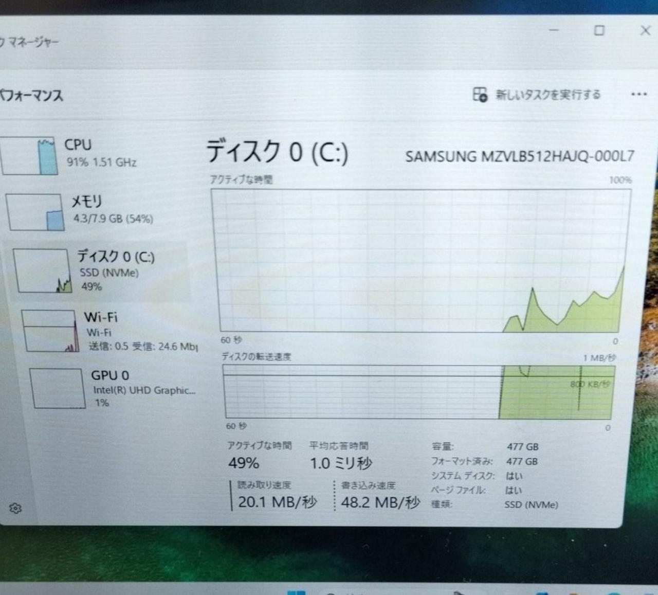 RAM:8GB ストレージ:SSD512GB GPU:UHD GRAPHICS 615 4GB