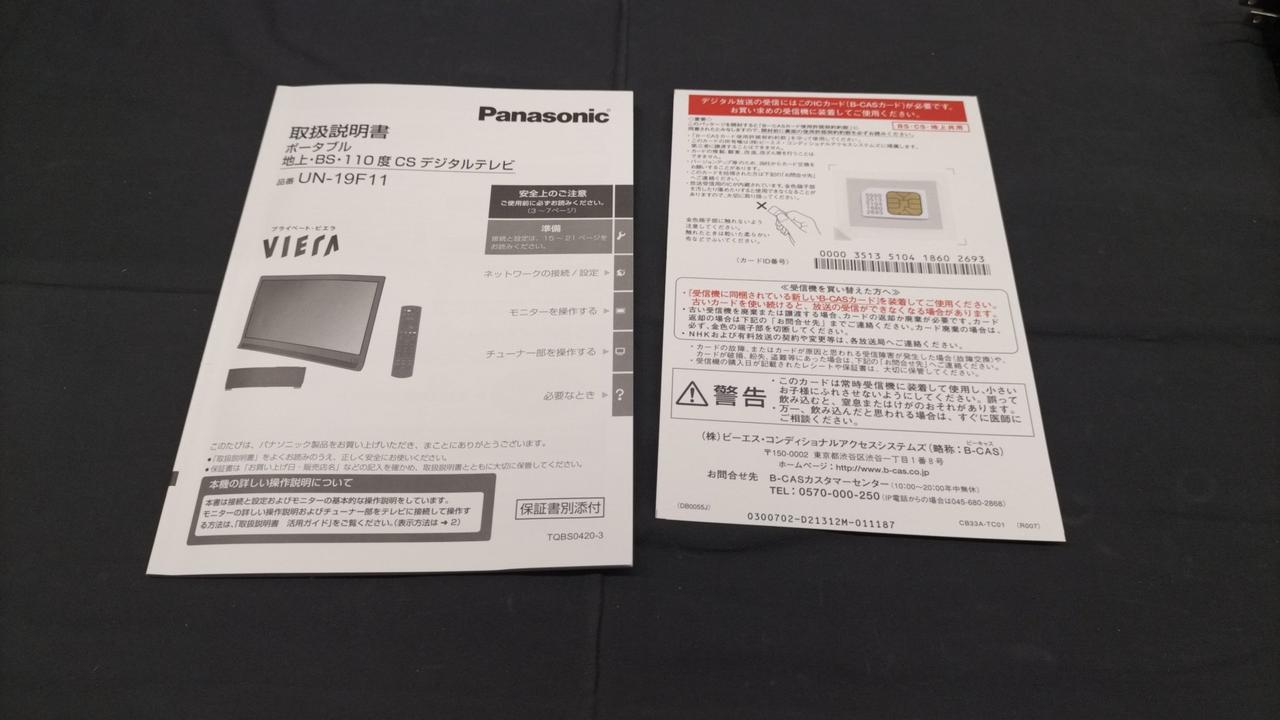 化粧箱、取扱説明書、電源アダプター、リモコン、mini B-cas |