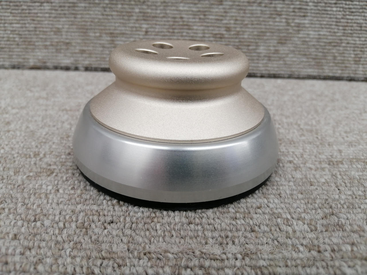 アルミ削りだし2分割構造とハネナイト防振ゴムでの徹底した防振スタビライザー。