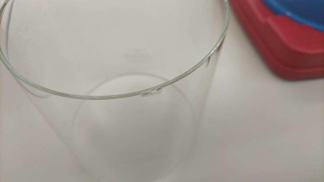 ガラス部品の縁に欠けがあります。