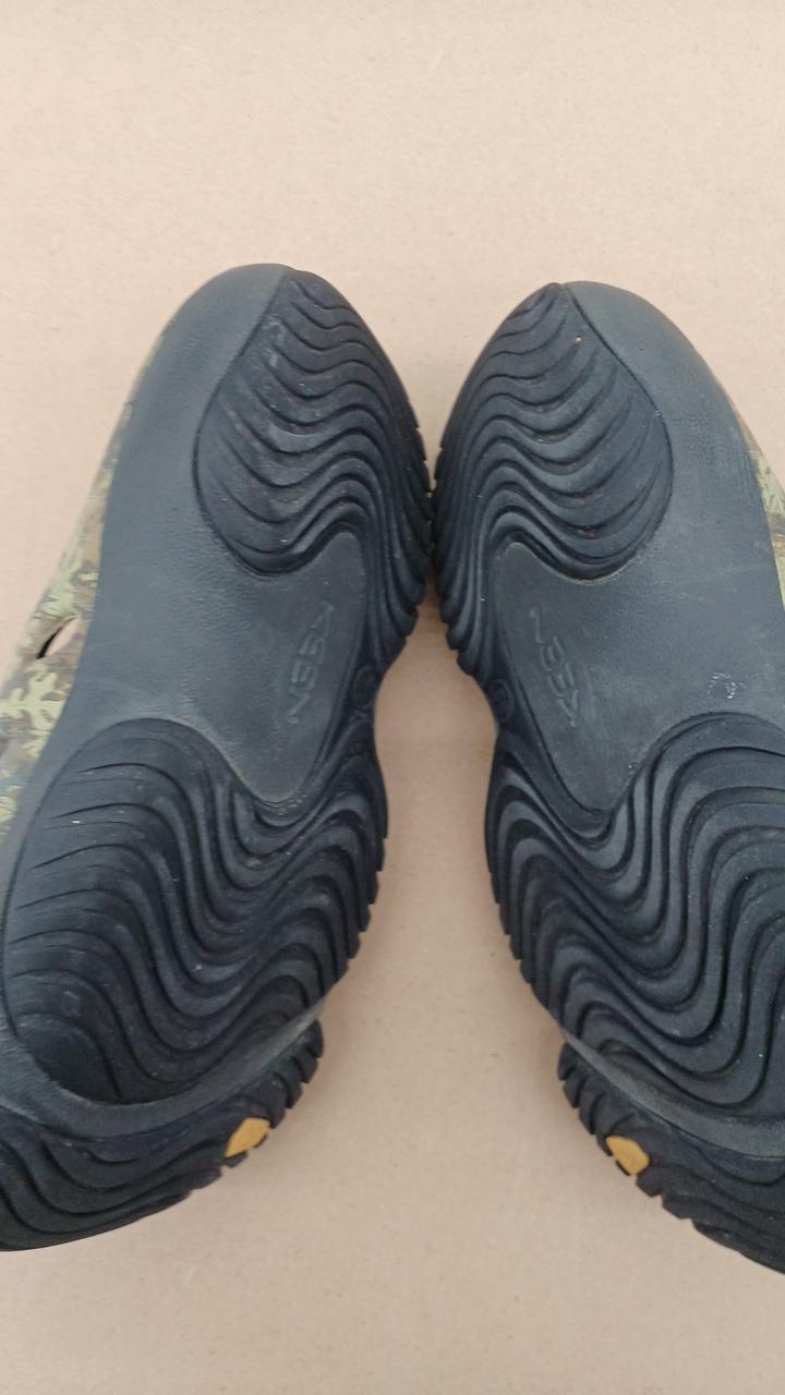 人気のKEEN ヨギ アーツ カモ柄です。使用感は比較的少なめ、柄部分のスレ摩耗もありません。全体的に軽めの使用汚れ。