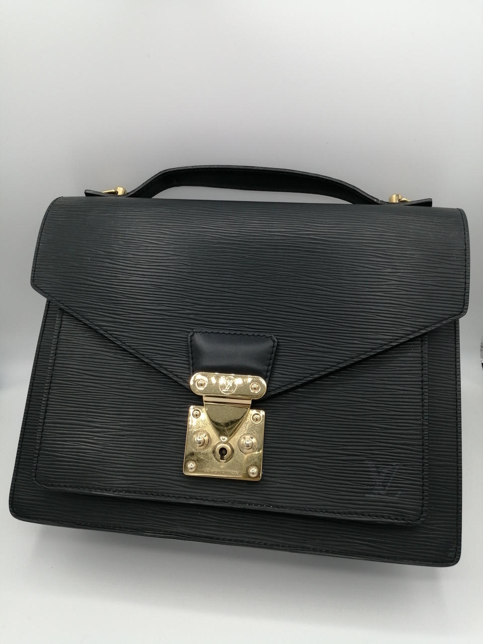 上質なエピレザーにかっちりしたフォルムが高級感のあるヴィトン定番のセカンドバッグ、モンソー。