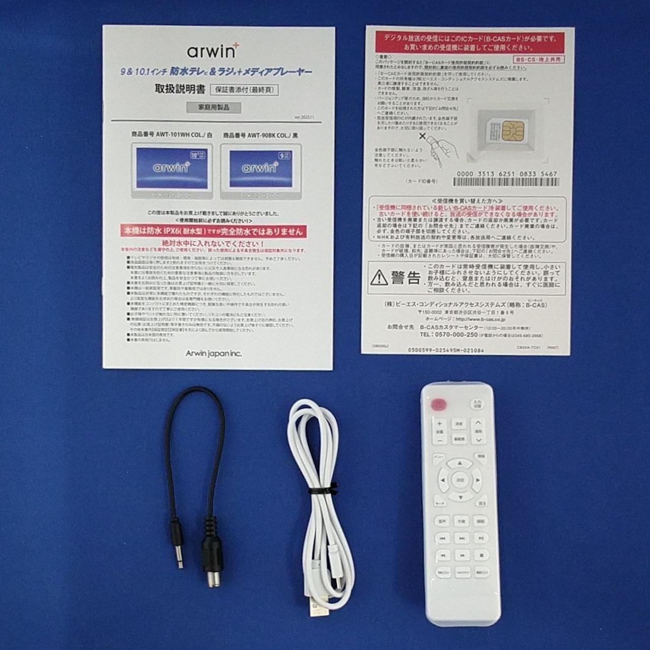 化粧箱・取扱説明書・接続ケーブル・リモコン・miniB-CASカード |