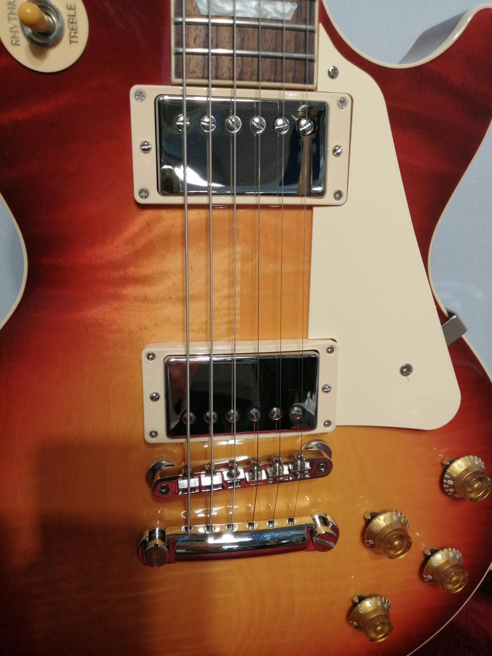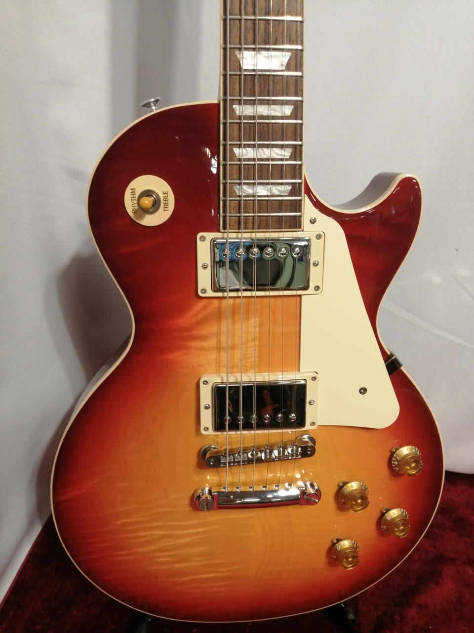 現行GibsonのStandardシリーズが入荷!美しいフィギュアドメイプルトップと厳選されたウェイトリリーフなしのマホガニーバック、ローズウッド指板、そしてピックアップにはBurstBucker1・2を搭載。 |