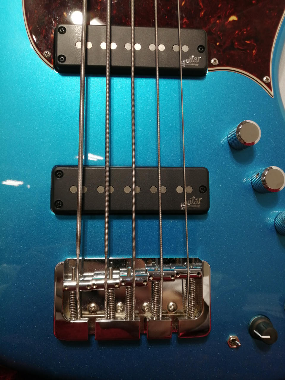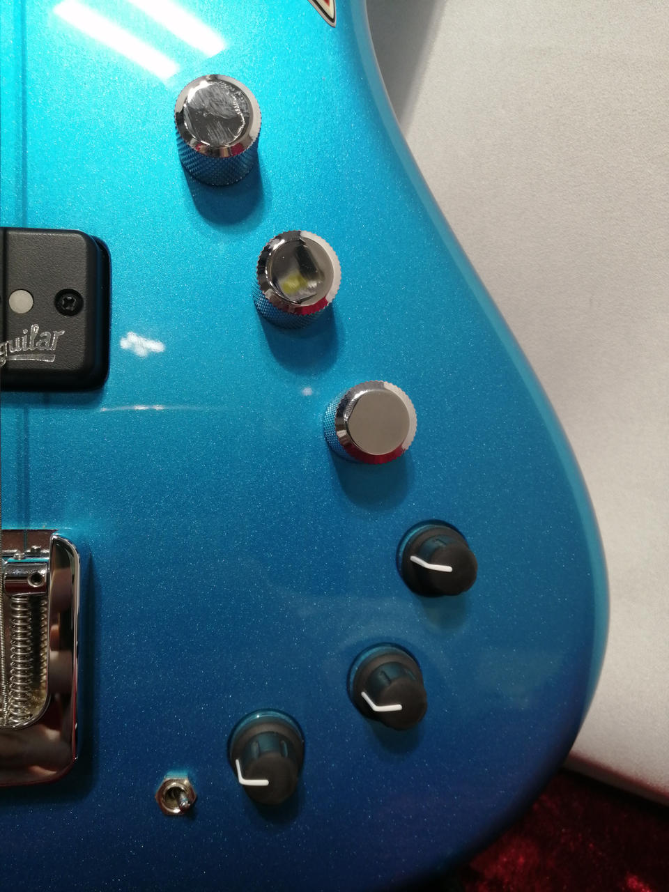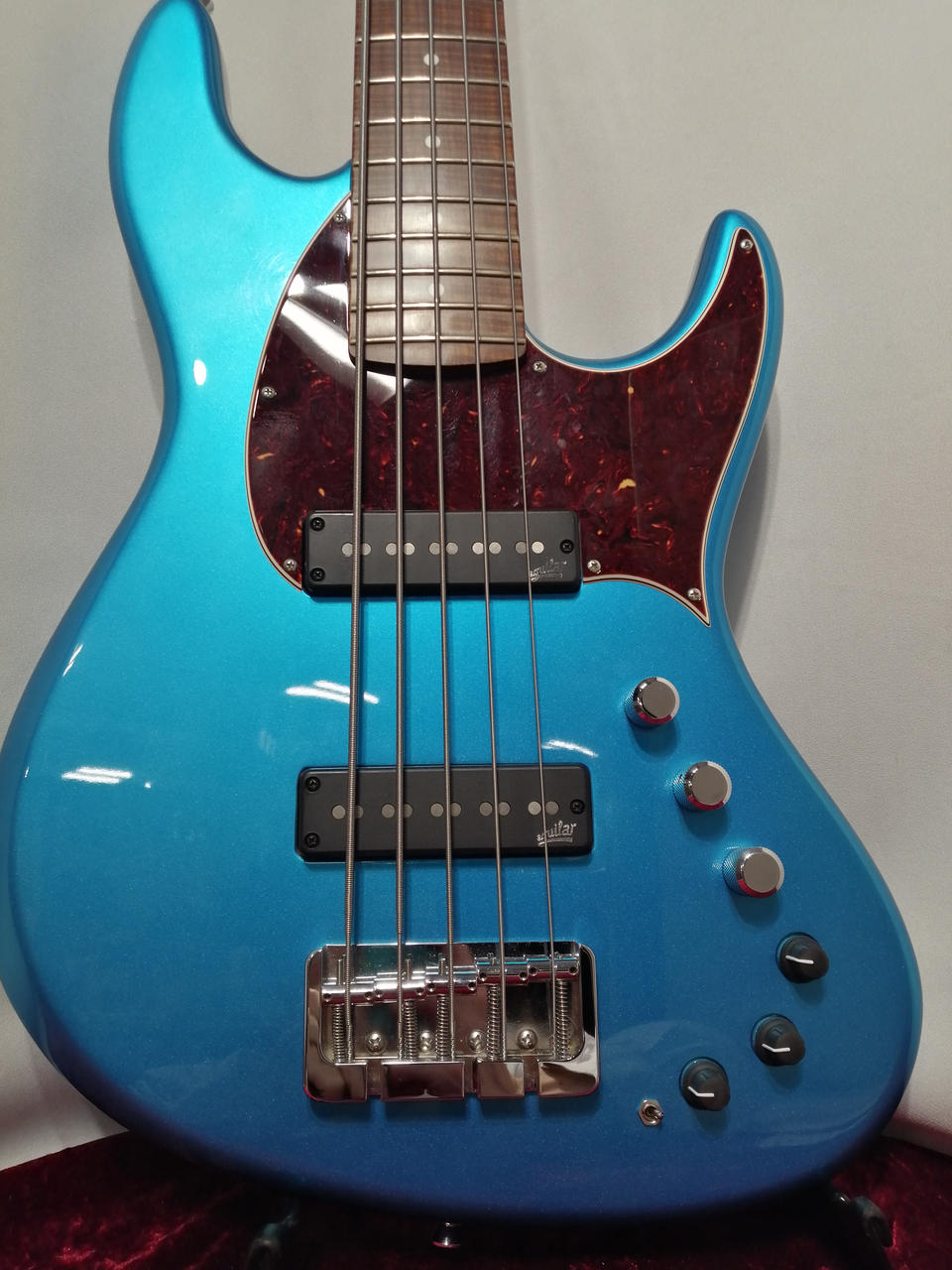 P.UはAguilar Super Single、プリアンプはAguilar OBP-3,Active/Passiveスイッチ、Mid Freqスイッチ、3BandEQ,Tone Control。 |
